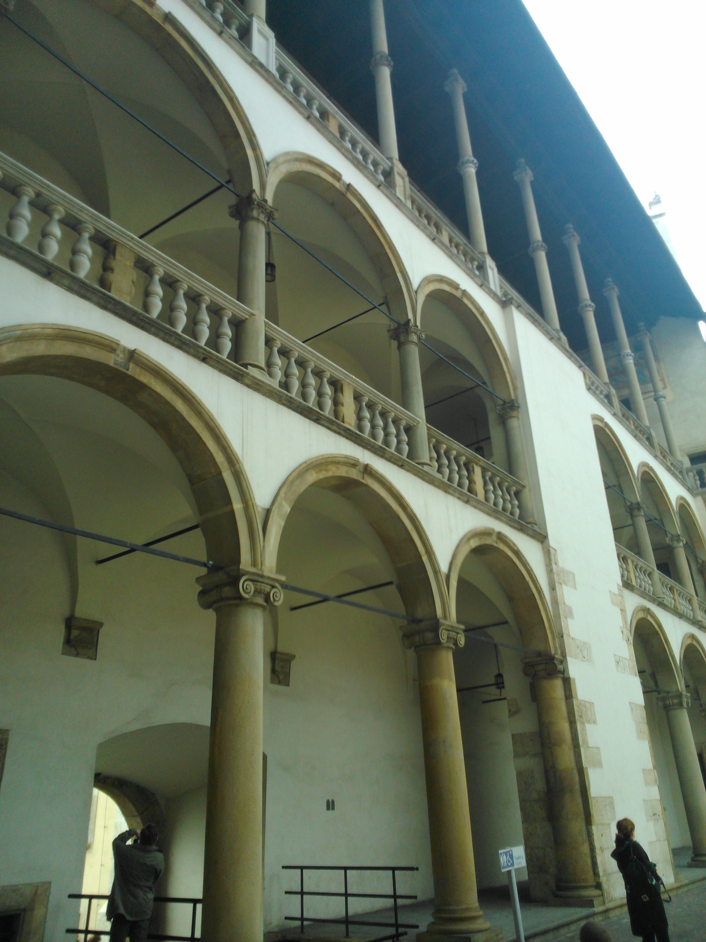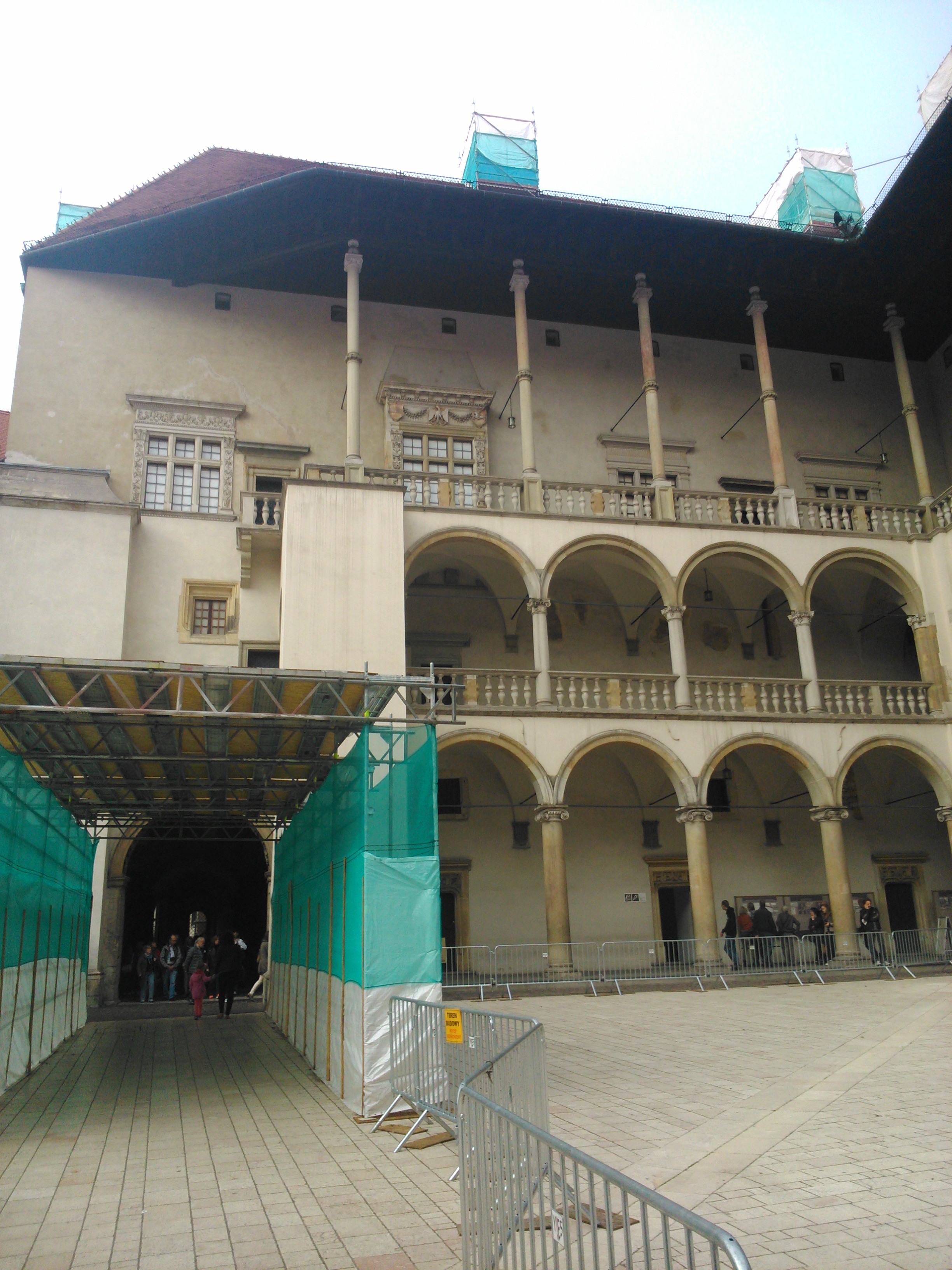 Gdy kończyliśmy zwiedzać Katedrę na Wawelu, było około godziny 10:00 (posiłkuję się godziną zrobienia zdjęć) i następnie udaliśmy się na dziedziniec wewnętrzny, a dokładniej renesansowy dziedziniec arkadowy, który także wtedy był w czasie remontu. O dziwo przewodnik także pozwolił nam go fotografować.