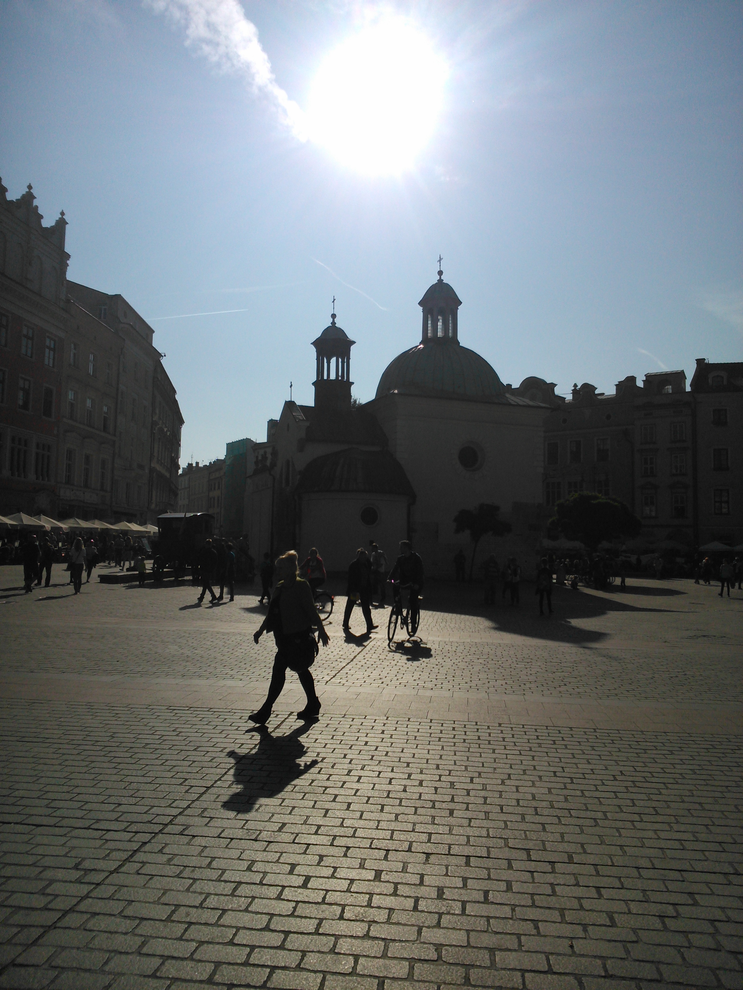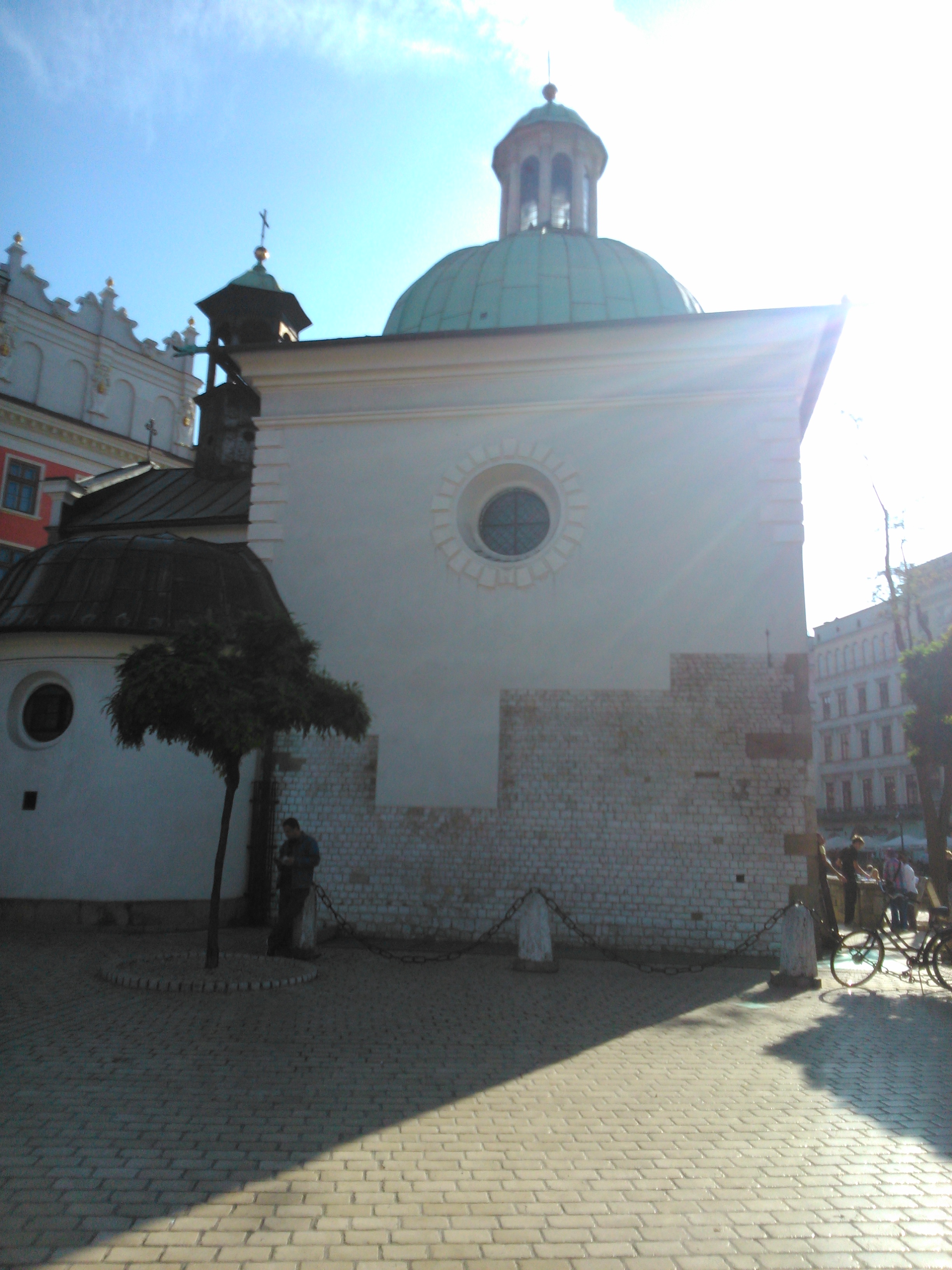 Zawsze kiedy bywałem w Krakowie to częścią obowiązkową wycieczek było zwiedzanie krakowskiego Rynku. Po zejściu z Wawelu na plac, gdzie stały autokary, mieliśmy odprawę. Była około godzina 13:00 i dostaliśmy mniej więcej 2 godziny wolnego czasu przed dojazdem, około godziny 15:00. Jako, że zrobiła się pogoda letnia, to zostawiłem w autokarze plecak, bluzę z kapturem, oraz cienką kurteczkę i ruszyłem na miasto w samej koszulce z plakatem "Szczęk" Stevena Spielberga na froncie. Z Bulwaru Czerwińskiego udałem się sam na zwiedzanie Krakowa. Jako, że od ostatniej wizyty w tym mieście minęło około 18 lat i zamiast iść tak zwaną "Drogą Królewską" (Podzamczem i skręcić w Kanoniczą, lub na na Grodzką), to ja poszedłem jedną przecznicę wcześniej. Chciałem wyjść na Rynek ulicą Straszewskiego, przeszedłem obok Kościoła Franciszkanów i Pałacu Biskupiego, gdzie się znajduje słynne "okno papieskie". Wiedziałem, że dzwonią, lecz nie wiedziałem, w którym kościele. Tak bym przeszedł obok Rynku i pewnie go okrążył i pewnie doszedłbym do Barbakanu, gdybym nie zobaczył po prawej stronie Sukiennic, albo to był Kościół św. Wojciecha? XD