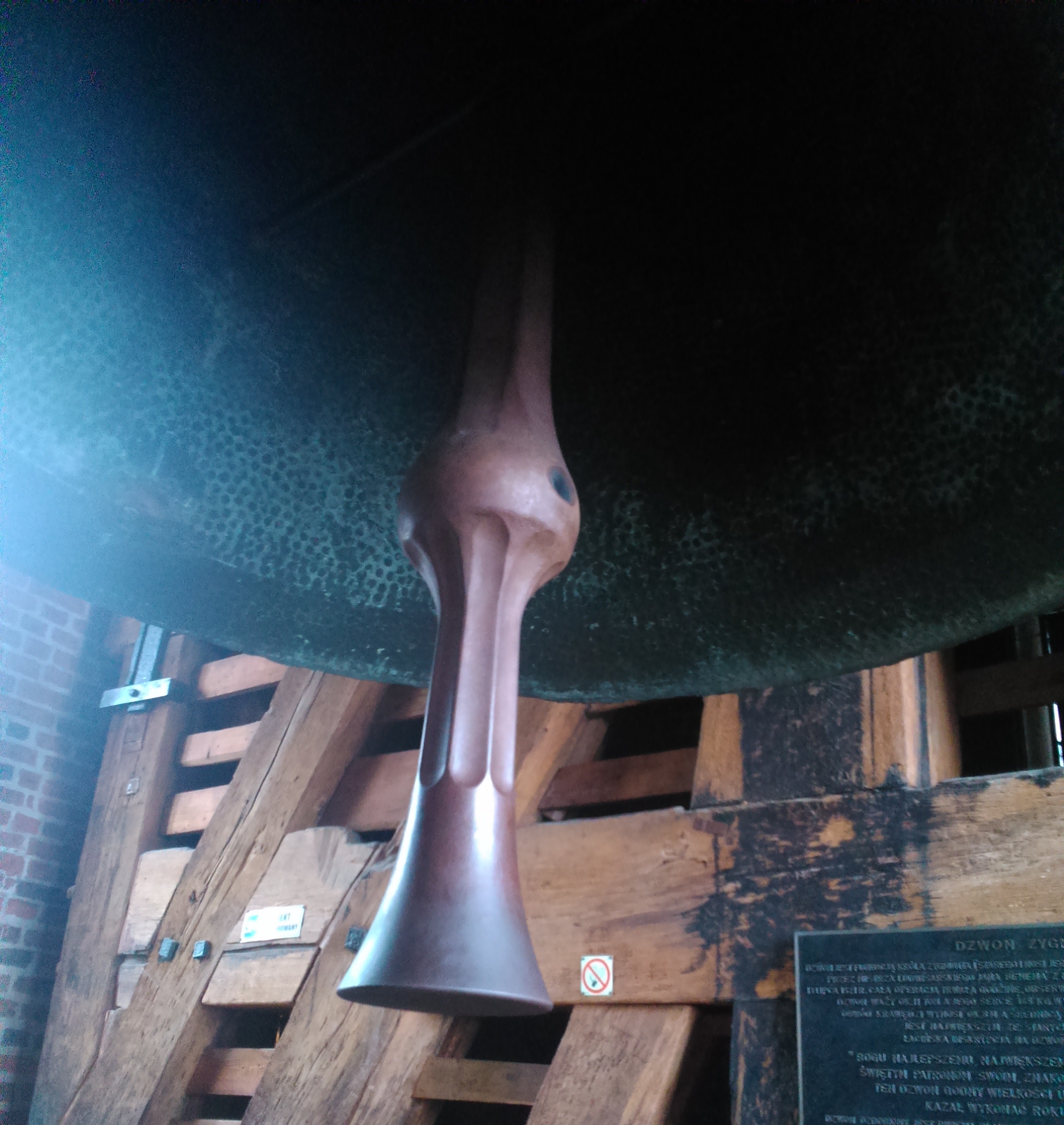 Zwiedzanie rozpoczęliśmy od Katedry na Wawelu. Najpierw zwiedziliśmy wnętrze kościoła, następnie weszliśmy na wieżę, gdzie znajduje się Dzwon Zygmunt, najsłynniejszy dzwon w Polsce. Często niepoprawnie jest nazywany jako "Dzwon Zygmunta". To był jedyny obiekt, jaki nam pozwolono sfotografować podczas zwiedzania Zamku Królewskiego na Wawelu. Oczywiście wszyscy porobili trochę zdjęć Dzwonowi Zygmuntowi, po czym zeszliśmy z tej wieży i chyba na sam koniec udaliśmy się na zwiedzanie katakumb pod wawelską katedrą.