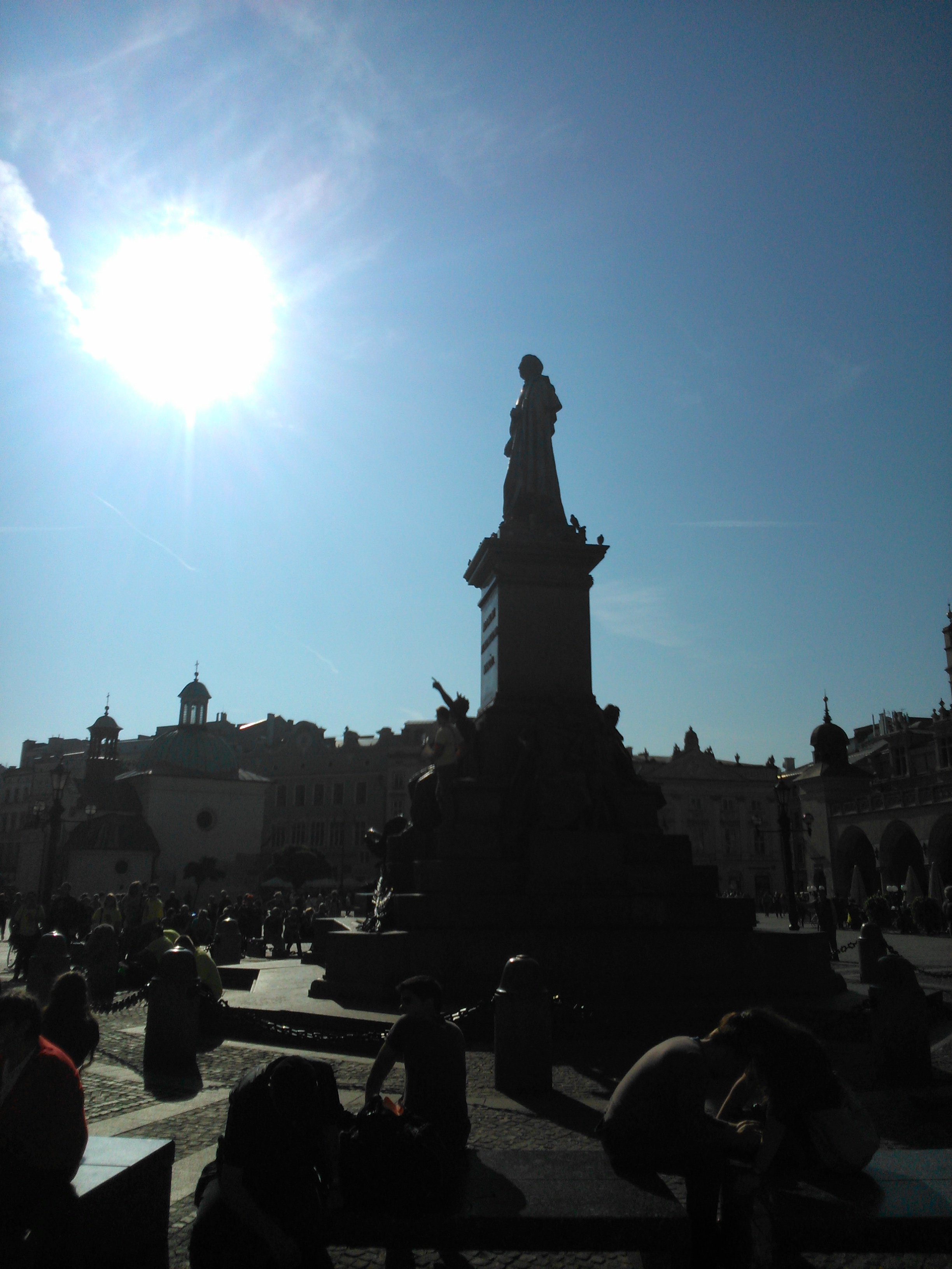 Zrobiłem to zdjęcie w kierunku południowym z widokiem na Kościół św Wojciecha. A to dlatego, że od strony wschodniej tego pomnika jakaś organizacja zrobiła sobie manifestację na rzecz przeciwko aborcji. Rozstawili ogromny baner przedstawiający martwe ludzkie dziecko, a jakiś koleś w garniturku stał na tym pomniku i nawalał przez megafon chyba podłączony do mikrofonu. Z tej perspektywy zdjęcia stał on chyba po mojej prawej stronie, może na "godzinie 4". Nie chcę pokazywać tych zdjęć, bo bym musiał użyć tagu NSFW.