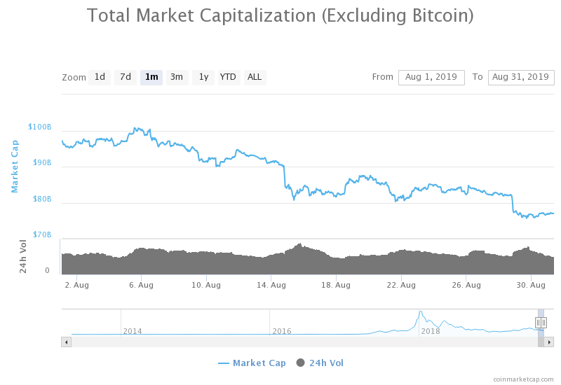 Po czerwcowym rekordzie w wysokości 330 000 000 000$ i maksymalnym poziomie z 10 lipca w wysokości 357 000 000 000$, rynek w sierpniu odnotował najwyższy stopień kapitalizacji blisko 318 000 000 000$ na początku miesiąca. Ostatecznie rynek zakończył miesiąc sierpień ustanawiając kapitalizację na poziomie 248 000 000 000$.