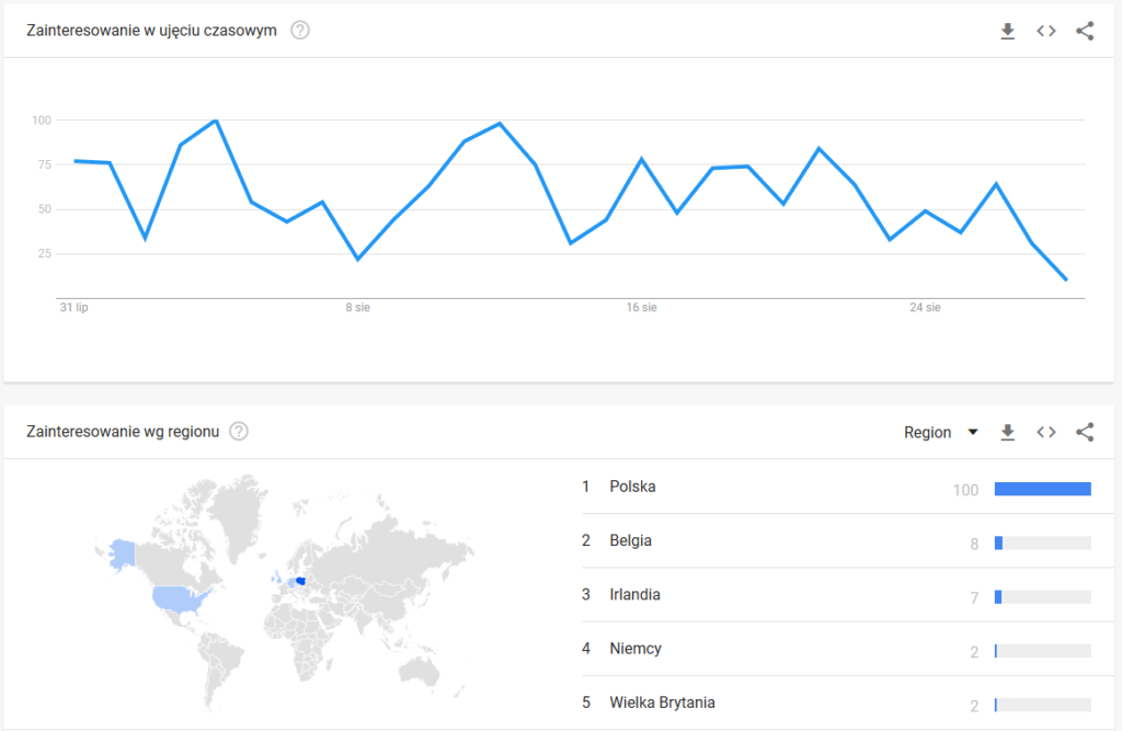 Zainteresowanie frazą „kryptowaluty” było w sierpniu na pierwszym miejscu jeżeli chodzi o nasz kraj!