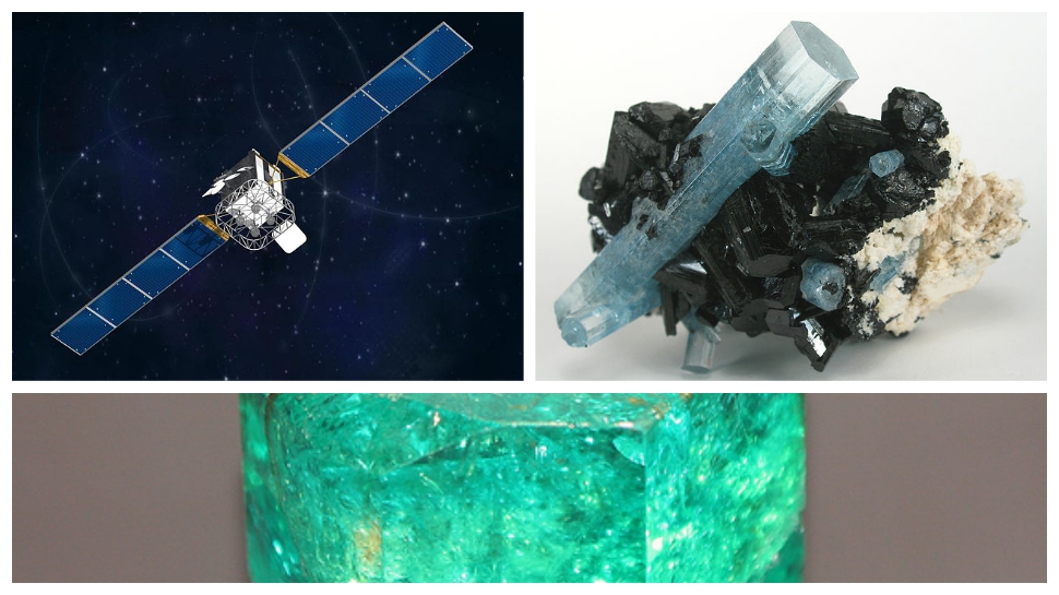 Rys. 3 Anteny z taśmy berylowej na satelitach astronomicznych, których długość może dochodzić nawet do pół kilometra ; akwamaryn (łac. aqua marina - "woda morska")- błękitny lub niebieskozielony minerał będący przezroczystą odmianą berylu; szmaragd