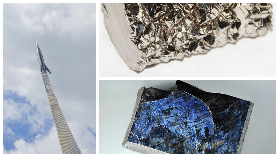 Rys. 2 Pomnik zdobywców kosmosu w Rosji; tytan krystaliczny wysokiej czystości tytan (99.999%)
