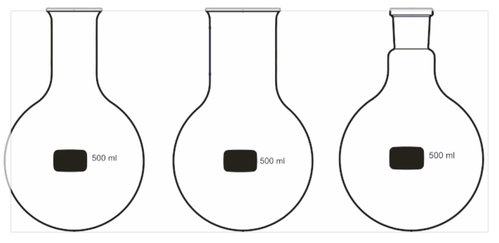 3. Kolba płaskodenna ang. flat-bottomed flask bardzo wygodna do ogrzewania cieczy na siatce azbestowej. Bywają kolby o różnej pojemności i o różnej szerokości szyjki.