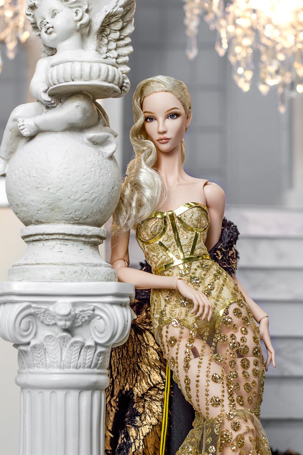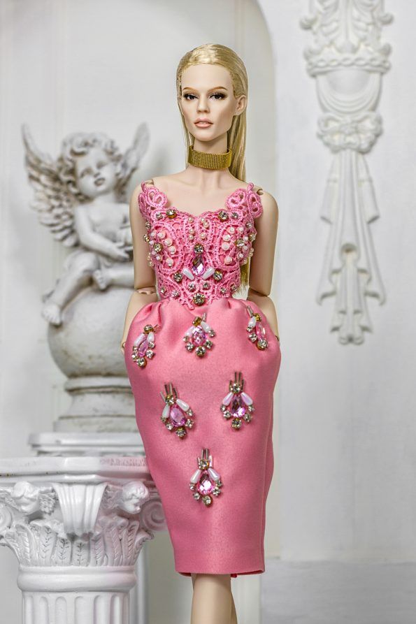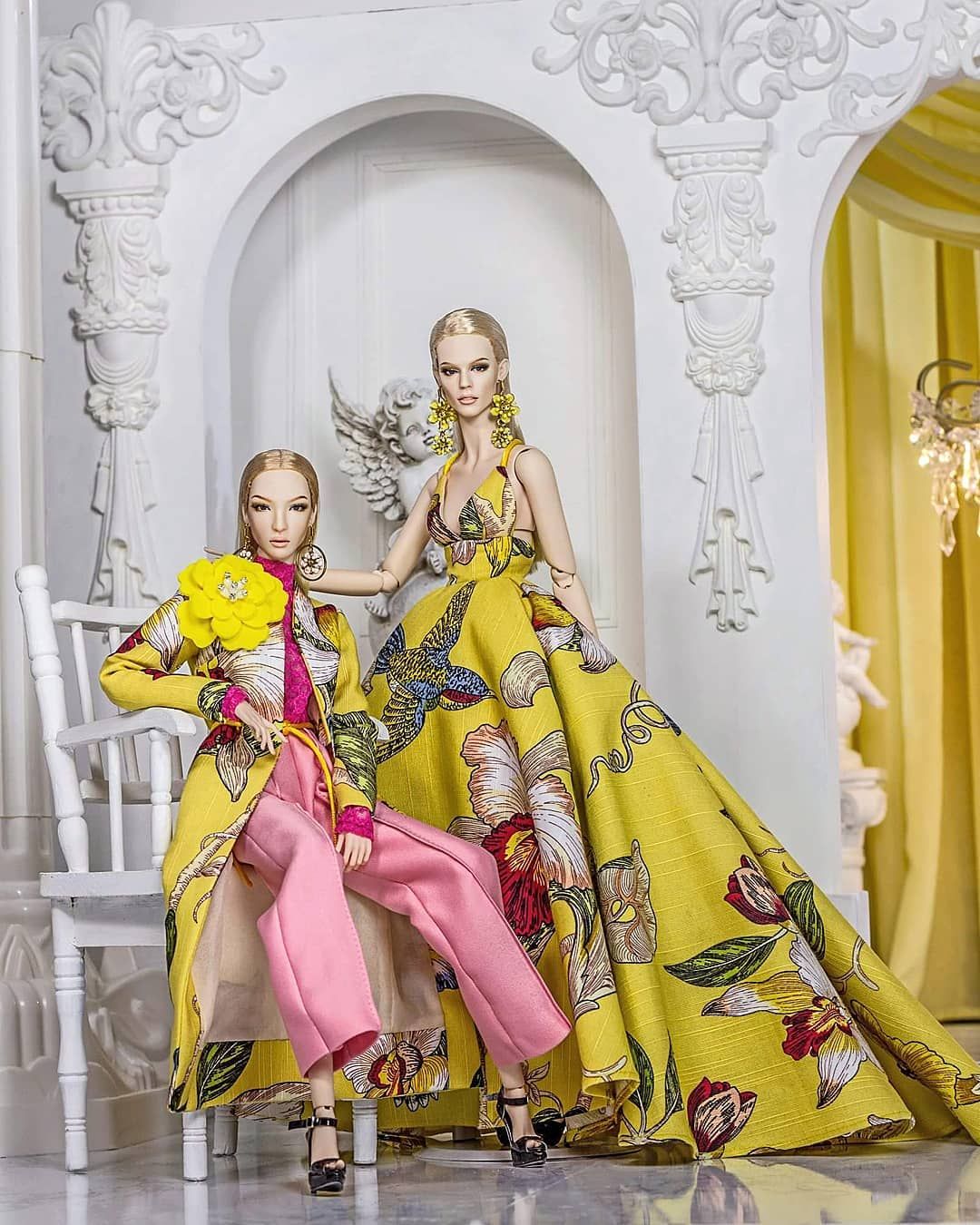 A gdyby tak wyszukać coś bardziej współczesnego? Bardzo proszę. Oto koreański projektant Nigel Chia klik Instagram, który tworząc modę dla kobiet, nie zapomina o tych mniejszych. Efektem czego są równie pięknie dopracowane lalki, niezwykle precyzyjne w każdym calu. Ich rysy, makijaż i ubranie są współczesne, lecz bardzo klasyczne. Przywołują mi na myśl barok - swoim chłodem szklanych oczu, bogato zdobionymi ubraniami i ekspozycją. Te 40 centymetrowe piękności również wykonane są z polimeryzowanej gliny, ich ciałka posiadają stawy, dzięki czemu małe modelki mogą zapozować w każdy sposób.