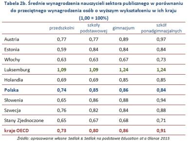 Skoro polscy nauczyciele, jeśli przyrównać zarobki innych osób z wyższym wynagrodzeniem nie zarabiają najgorzej, bo 0,74-0,84 tego co średnio zarabiają inni, a w tym lekarze, prawnicy, którzy podnoszą średnią, to może powinny im rosnąć wynagrodzenia wraz z wynagrodzeniami innych, to samo się tyczy całej budżetówki.