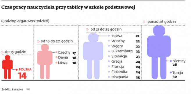 Godziny "przy tablicy" faktycznie w Polsce są ustalone na niskim poziomie. (Przedstawiona tabela zawiera błąd - w Finlandii na pierwszym etapie edukacji pensum wynosi 24 godziny lekcyjne, a nie zegarowe.) Z tym, że w Polsce do pensum nie wliczono funkcjonujących wcześniej dwóch tak zwanych "karcianek", zajęć pozalekcyjnych, nauczania indywidualnego, które to w innych krajach działają w ramach pensum. Niektóre systemy regulują tymi godzinami również zastępstwa.