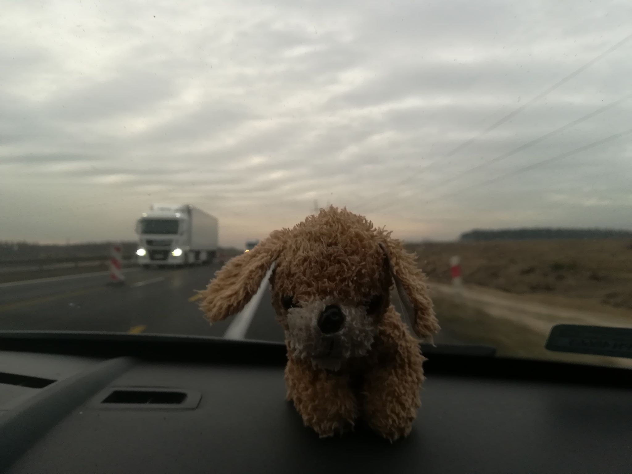 Fotografia powyżej jest pierwszym ze zdjęć psiaka z podróży. Od chwili wyjazdu na bieżąco wysyłałam zdjęcia modela z różnych miejsc na naszej trasie.