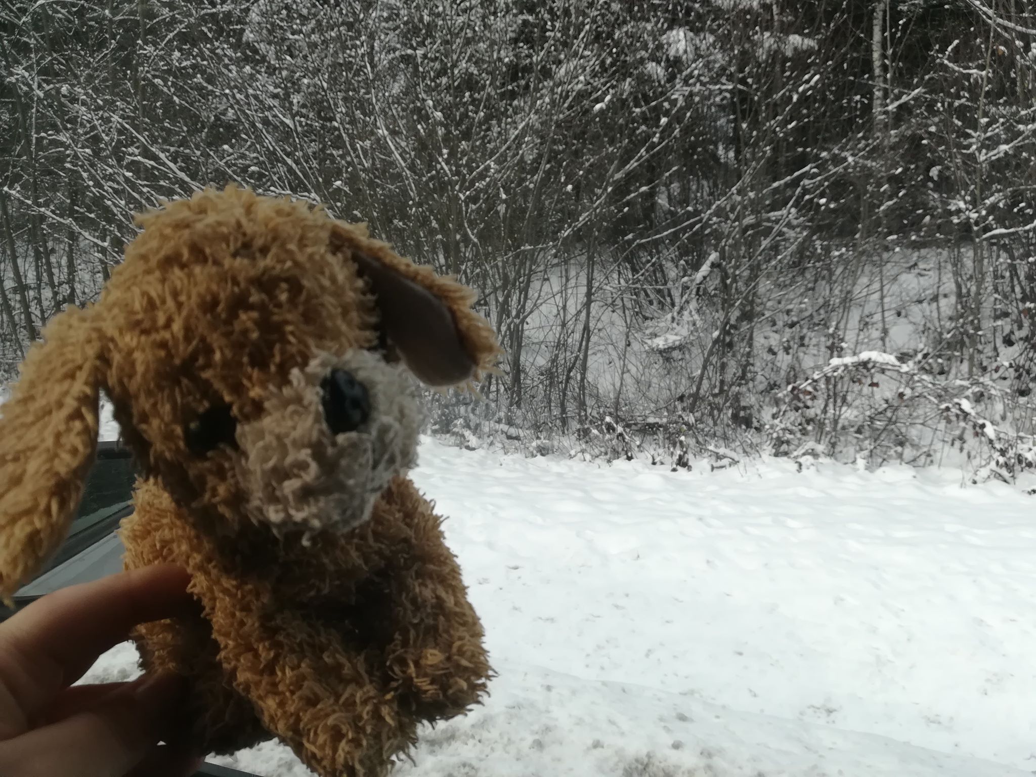 Przed wyjazdem zaproponowałam córkom, by te dały nam jakieś swoje maskotki na drogę żebyśmy nie jechali sami. Lilka stwierdziła, że "tata ma kasę i możecie sobie kupić", Łucja włożyła mi pod poduszkę pieska ze zdjęcia powyżej, powiedziała, że muszę z nim spać, żeby nie zapomnieć go rano zabrać.