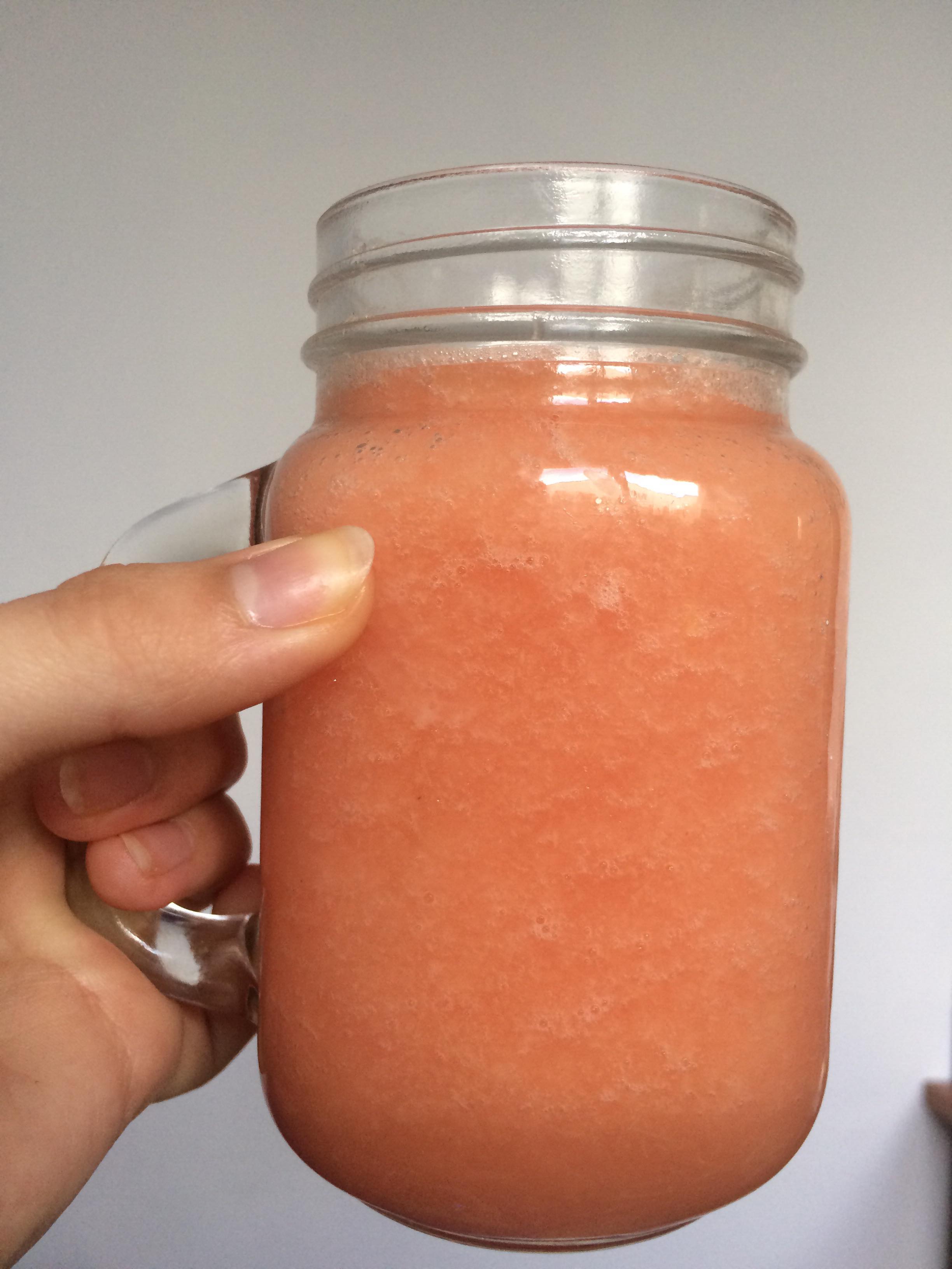 W moim przypadku główny składnik to soczysty arbuz, zaraz po nim brzoskwinia, ananas i banan oraz szczypta mięty. Koktajl idealnie komponuje się z naszym śniadaniem.