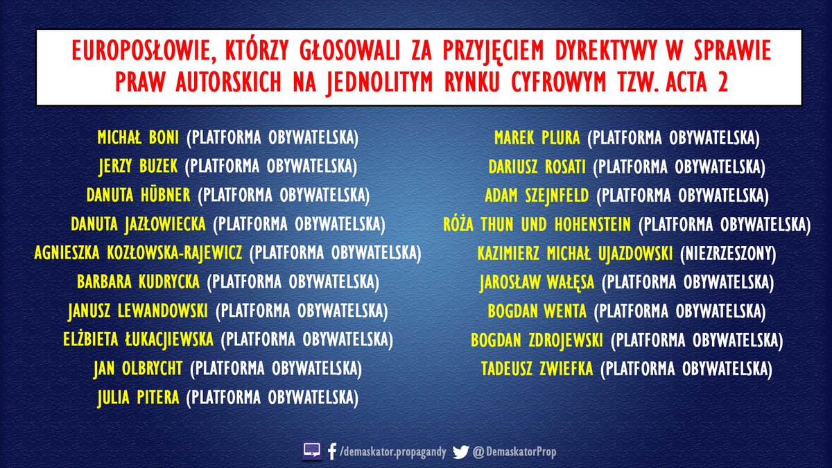 Lista PO-wców głosujących za ACTA 2kisiel (40)in #polish • 8 years ago Źródło: Demaskator #acta2 #polityka #po