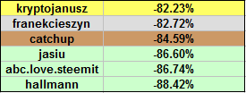@catchup spóźnił się ze zgłoszeniem, więc w głównym konkursie nie brałem jego wyników pod uwagę, ale ponieważ wspiął się na podium to otrzyma 5 STEEM.