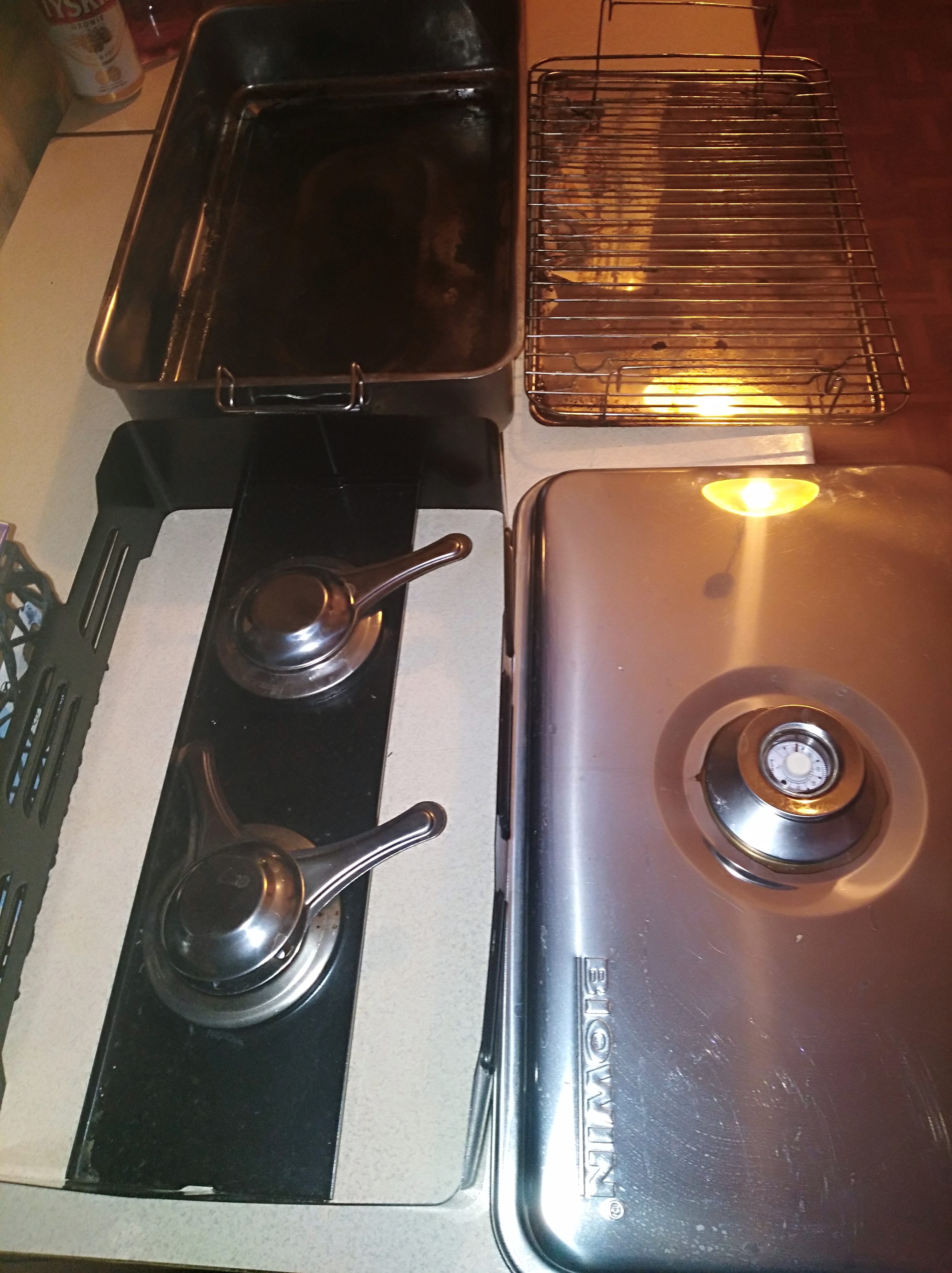 Na dno "naczynia głównego" wsypujemy nasze zrębki , nakładamy na to blaszkę widoczną na zdjęciu pod rusztem. Dwa palniki podgrzewają nasze wióry, które pod wpływem temperatury( 60 stopni) zaczynają wytwarzać dym - on natomiast wydostaje się z pod blaszki i obwędza nasze smakołyki z rusztu. Pokrywa jest z zegarem więc spokojnie możemy kontrolować naszą temperaturę. Tak na prawdę to nic nie musimy robić - wędzi się samo :) Tak jak pisałem wcześniej, najlepsze zrębki to olcha i buczyna - innych nie polecam, ale to jest tylko moje zdanie. Znam osoby, które wędzą np. tylko brzozą. W dużej wędzarni stosuję drewno olchowe okorowane, wiśnie, i kilka gałązek jałowca pod koniec wędzenia .