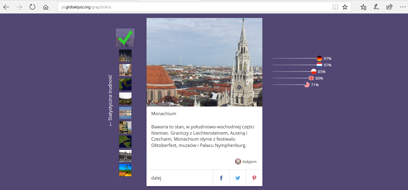 Wielu youtuberów w Polsce w tym Remigiusz Maciaszek oraz Kolega Ignacy sprawdzali swoją wiedzę na tym portalu. Każda gra składa się z dziesięciu pytań w jednej kategorii na które odpowiadamy. Po udzieleniu odpowiedzi mamy krótki anegdotkę na temat udział osób z różnych krajów które odpowiedziały na to pytanie poprawnie. Strona ta oferuje nam pytania z bardzo wielu dziedzin np. historii różnych krajów, biologii, języków i wielu innych. Ogólnie znajduje się tutaj 9 kategorii każdy myśli sobie mało, lecz każda kategoria skrywa podgrupy w których skład wchodzi nawet do 20 różnych pytań z wybranej dziedziny.