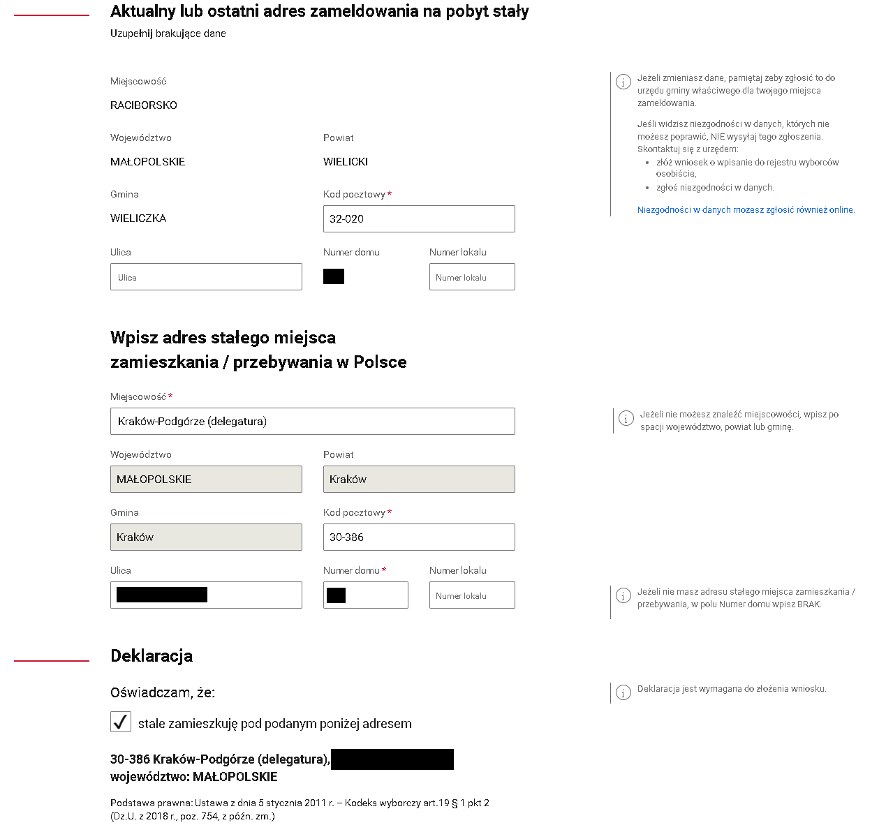 P.S. Przepisanie do rejestru wyborców ma charakter trwały, t.j. jeżeli nie złożymy innego wniosku będziemy w każdych kolejnych wyborach przypisani do lokalu odpowiadającego naszemu miejscu zamieszkania z właśnie wysłanego wniosku. Jeżeli ponownie zmienimy adres zamieszkania, możemy bez problemu ponownie przepisać się do innego rejestru wyborców (także w obrębie tej samej miejscowości)