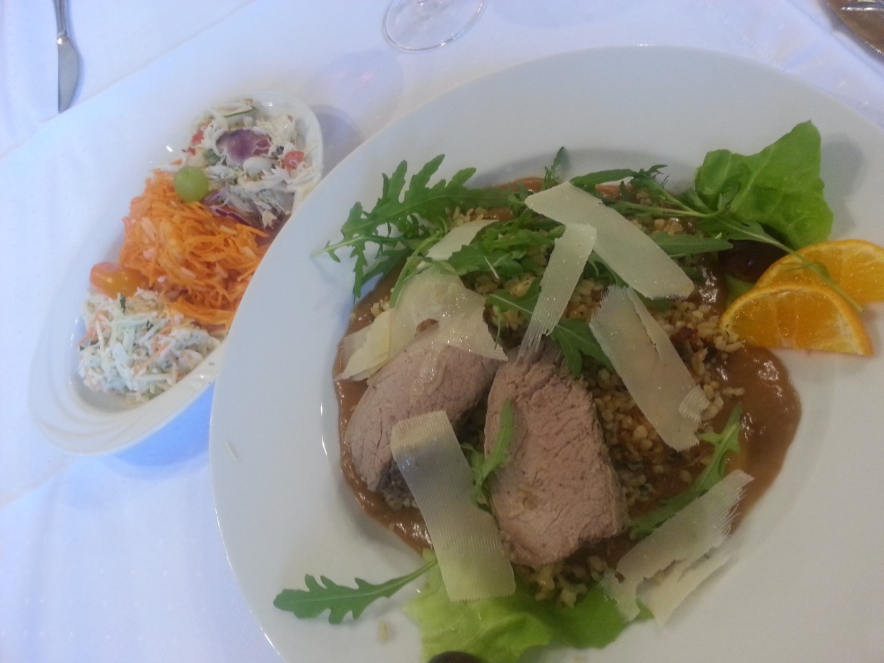 Kasza gryczana z piecznia z kaczki izaserwowane z cieniutkami plastrami sera. Salatki fenomenalne :)