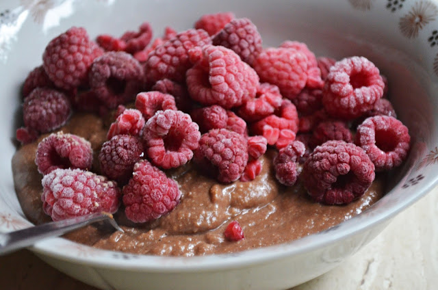 Standardowo gotujemy kasze jaglaną. Po ugotowaniu przekładamy ją do blendera dodajemy wszystkie składniki oprócz malin i blendujemy. Proste i smacznego.