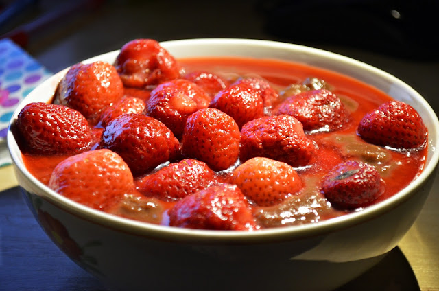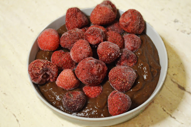 Bataty obieramy, następnie kroimy na mniejsze części i gotujemy. Już ugotowane bataty wrzucamy do blendera razem z odżywką białkową, olejem kokosowym i kakao, podlewamy wodą dla uzyskania konsystencji takiej, która nas satysfakcjonuje u mnie jest to zawsze rzadka papka. Na koniec dodajemy truskawki czekamy, aż pod wpływem ciepła się roztopią. Gotowe !