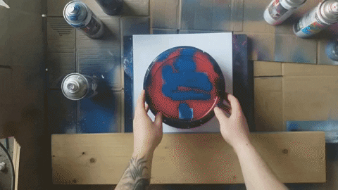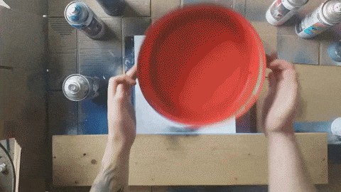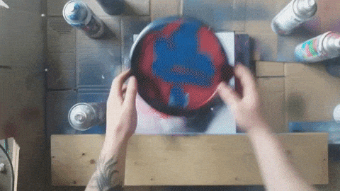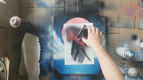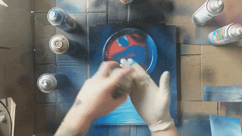 Czas wykonać gwiazdy, aby je wykonać musimy białym sprayem napsikać na dwa palce od wewnątrz(wskazujący i środkowy), a następnie wykonywać ruch jak na gifie.