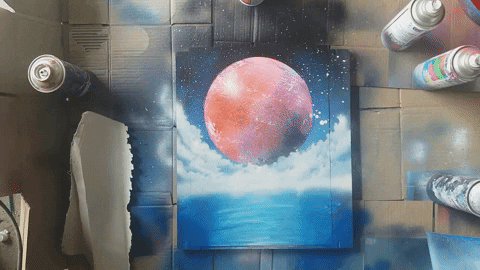 Jak namalować tańczącą kobietę w chmurach na tle planety. Spray Paint Art