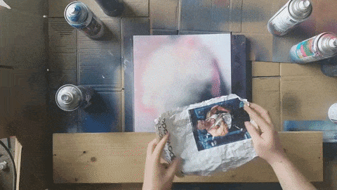 Jeśli lubicie cienie tak jak ja, możecie teraz ciemnym niebieskim i czarnym sprayem przyciemnić dolne rogi obrazu.