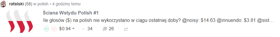 Korzystając z okazji, powiem o wise. Głosowanie przez wise ostatnimi czasy trochę nie działało. Nie będę tłumaczył dlaczego, ponieważ nie wiem. Odniosę się do komentarza, który mówił, że nie otrzymuje głosów od @fervi bo go nie lubi. W takim razie @astromaniak też mnie nie lubi, skoro nie dostałem głosu od @noisy. A nie czekajcie, dostałem.