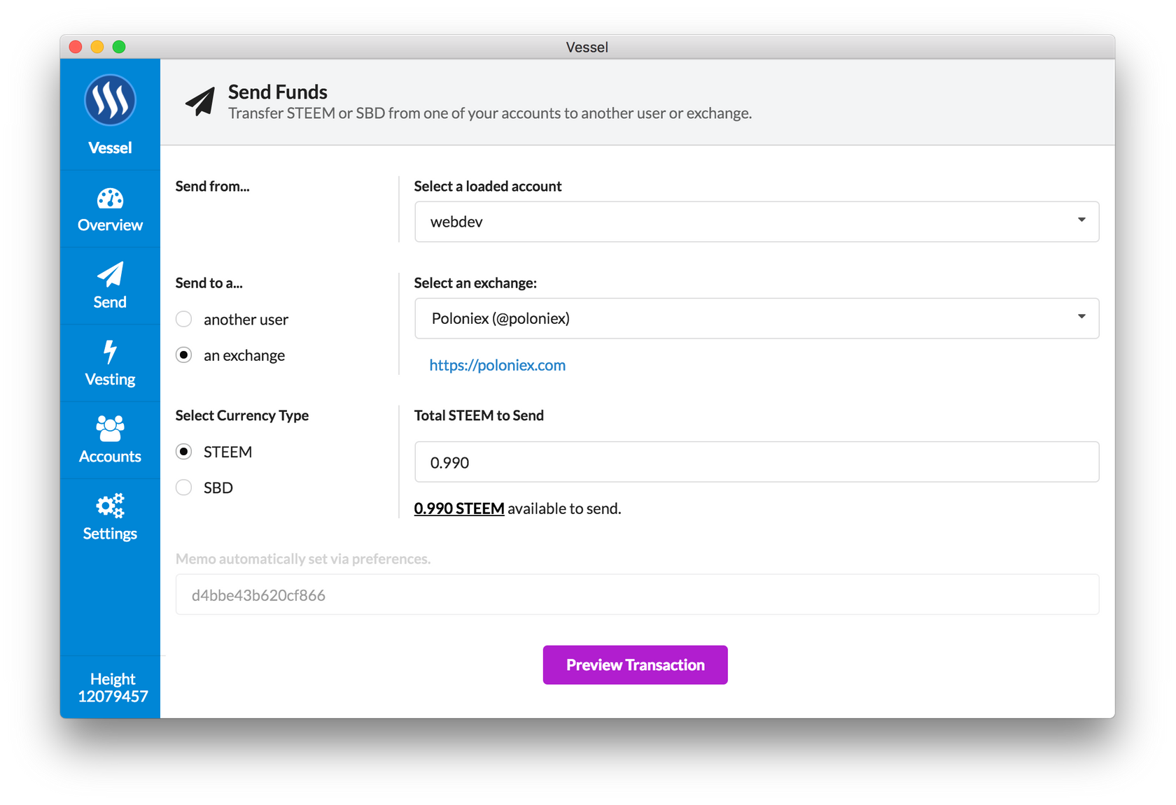 Zakładając, że np. Steemit jest offline, w dalszym ciągu można wykonywać przelewy np. za pomocą aplikacji mobilnej eSteem czy za pomocą aplikacji Vessel, którą możesz zainstalować na swoim komputerze: