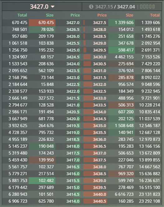Z punktu widzenie innego gracza, w order book pojawia się pozycja zakupu na 5 000 000 kontraktów przy cenie 3340 USD. Jeżeli jakiś gracz będzie chciał sprzedać 2 500 000 kontraktów po tej cenie, to czy nasze zlecenie będzie w całości zrealizowane? Nie. W pierwszej kolejności zostaną wydane kontrakty osoby 1-2 i 500 000 kontraktów z naszego zlecenia, a książka będzie wyglądać tak jak poniżej.