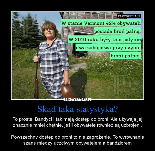 Wraz ze wzrostem posiadania broni spada przestępczość. Przestępcy boją się o swoje życie i wolą nie ryzykować.