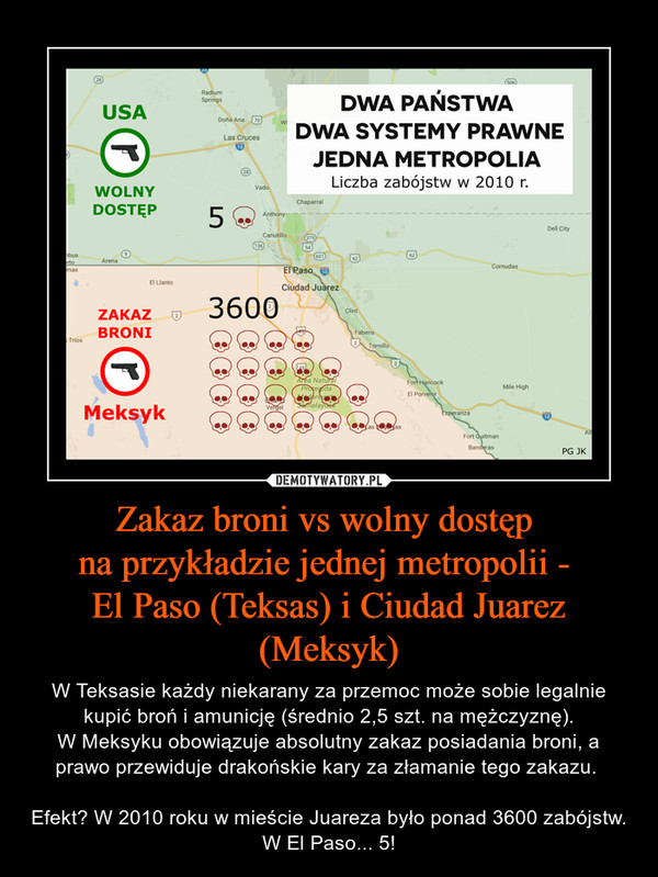 Głównym argumentem przeciwników broni palnej jest zwiększona liczba przestępstw i morderstw.