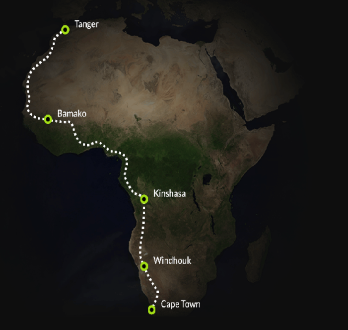 będzie prowadzić przez takie państwa jak RPA, Namibię, Angolę, Demokratyczną Republikę Konga, Kongo, Gabon, Kamerun, Nigerię, Benin, Burkina Faso, Mali, Senegal, Gambię, Mauretanię, Maroko. Początek trasy nie będzie stanowić problemu ponieważ w RPA dostęp do prądu jest powszechny a drogi bardzo dobre jak na Afrykę. Schody zaczną się w kolejnych krajach gdzie często dominują drogi szutrowe i wysoka temperatura, która może stanowić problemy z baterią, a podróżnik aby oszczędzić baterię i przejechać więcej kilometrów będzie musiał zrezygnować z klimy. Fiedler planuje dziennie pokonywać 150km, trasa jest tak zaplanowana aby dojeżdżać do miejsc, w których można spodziewać się prądu. Jednak na trasie znajdują się miejsca, w których może być ciężko z doładowaniem samochodu. Polak zdaję sobie z tego sprawę i jest gotowy na każdy przypadek oraz liczy na pomoc mieszkańców (np ładowanie auta za pomocna agregatu). Arkady Paweł Fiedler wcześniej już przejechał Czarny Ląd maluchem, o tym więcej w książce oraz filmikach na youtube.