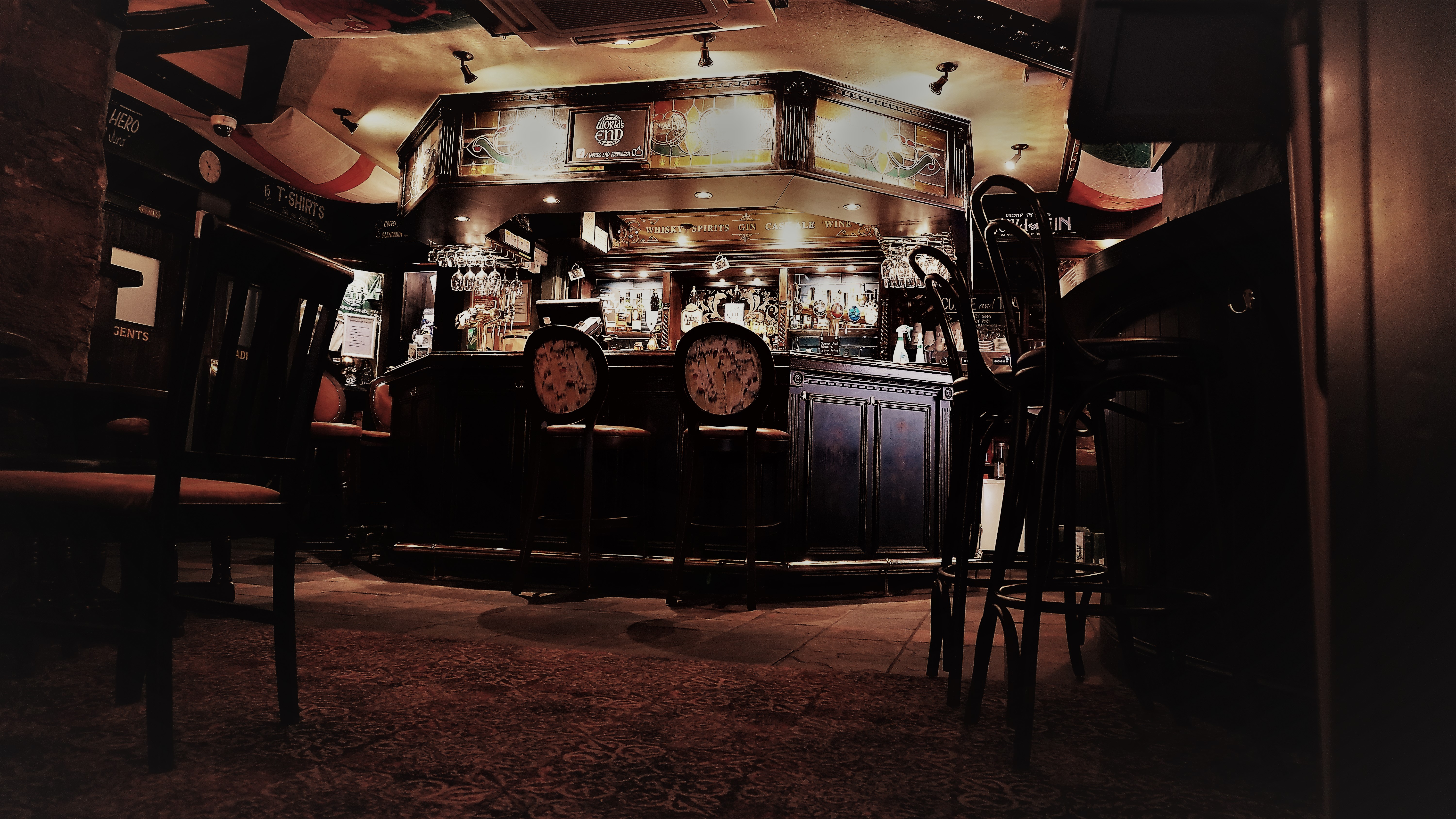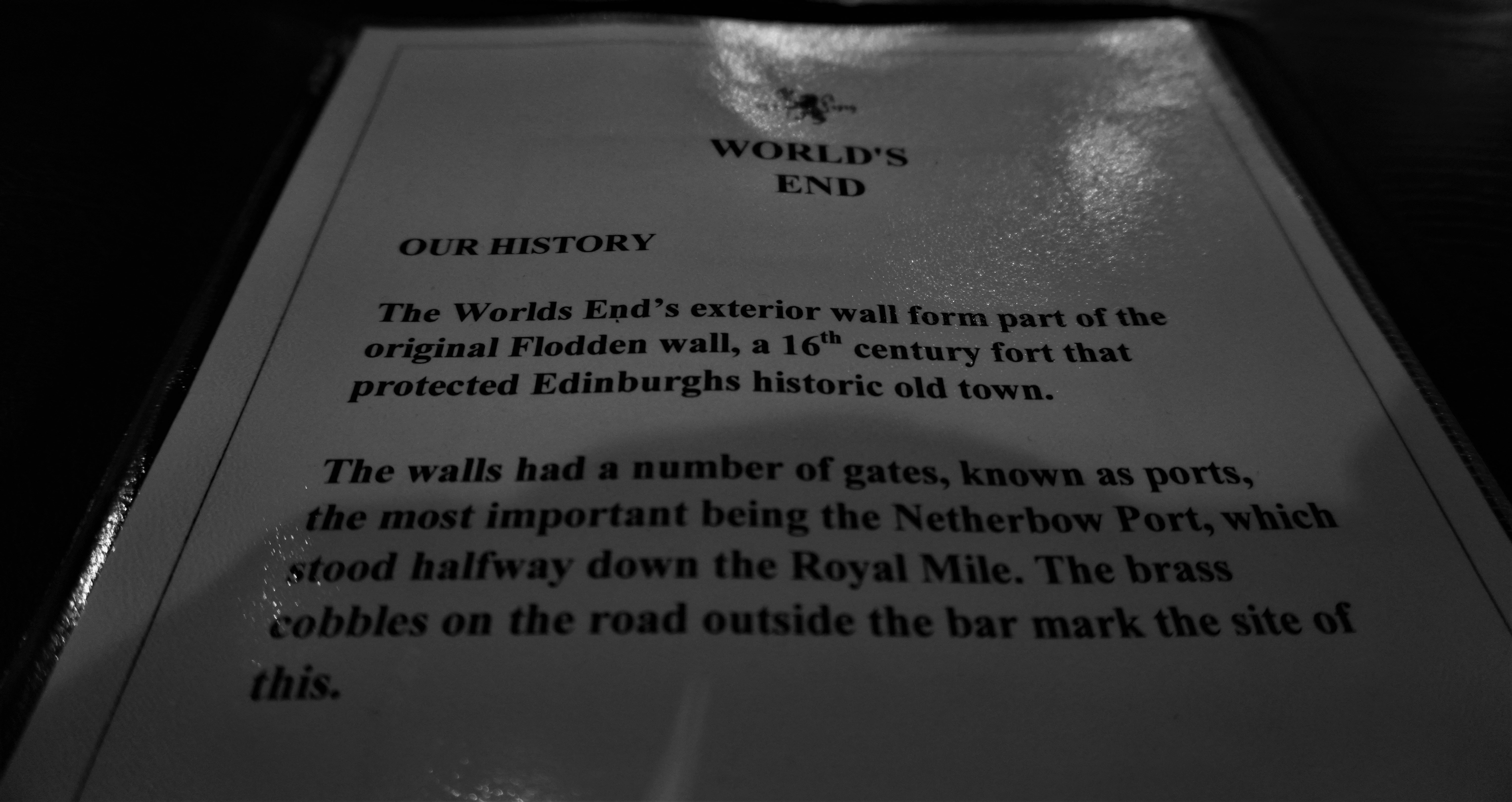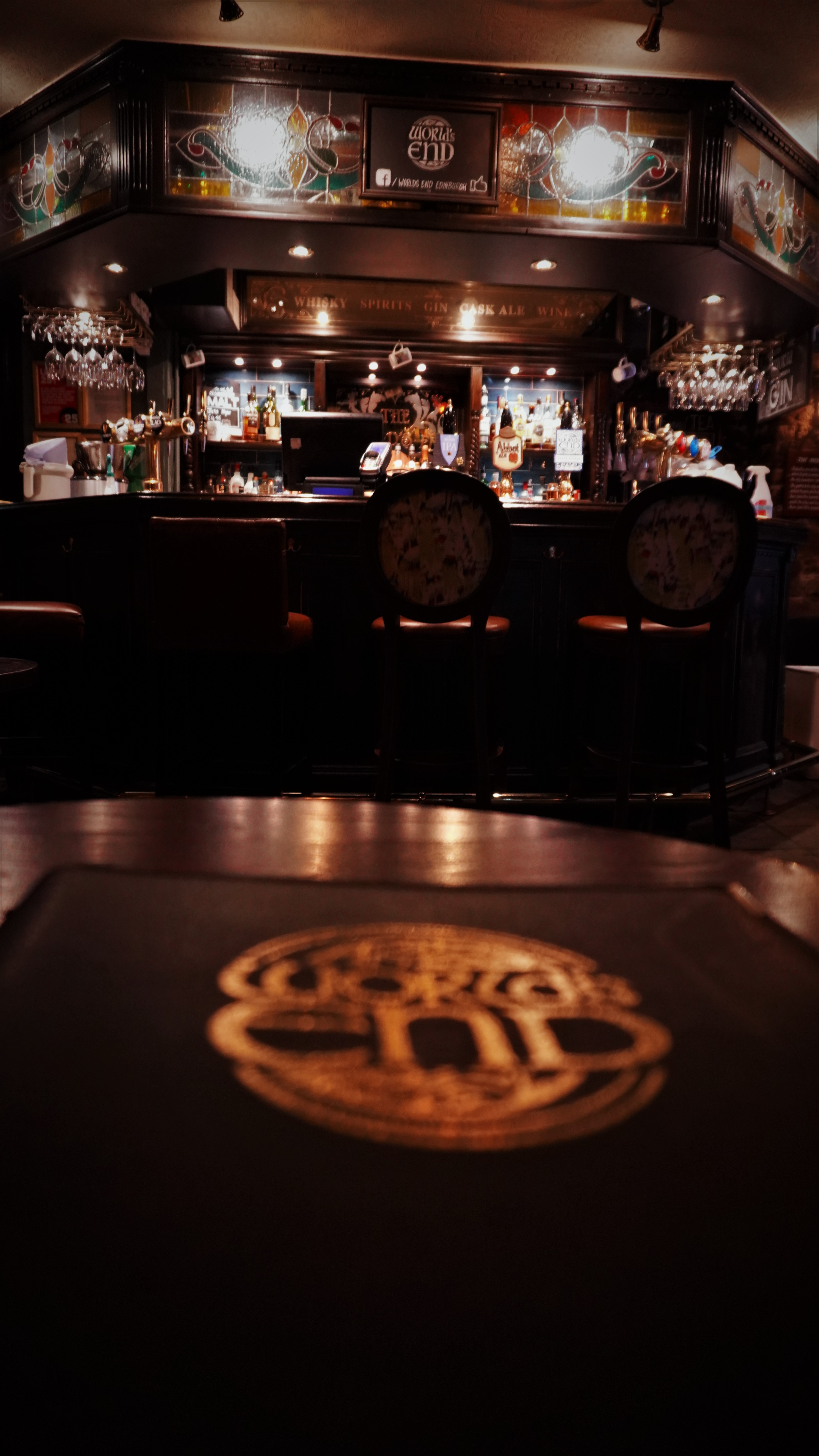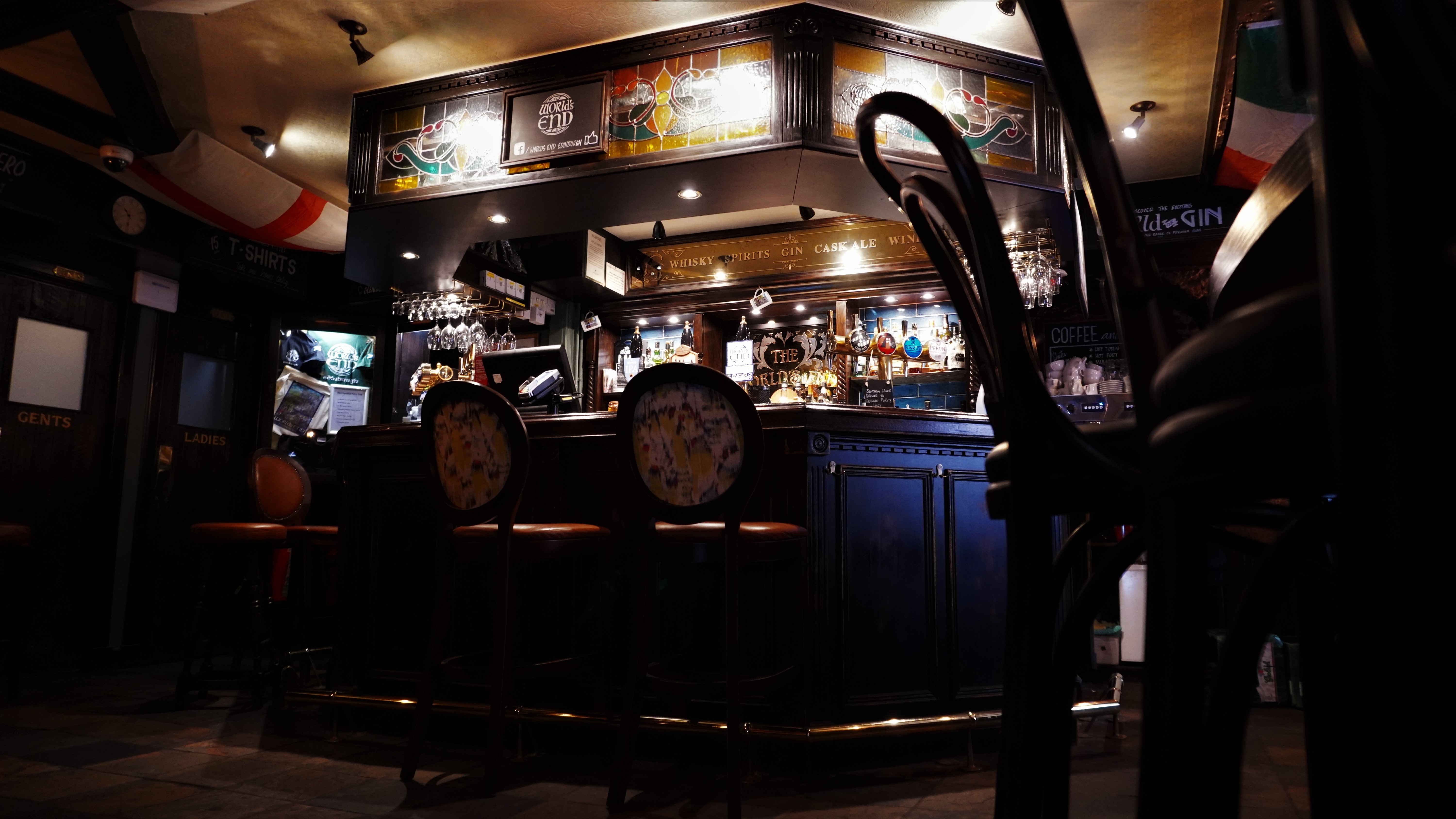 Prawdopodobnie jeden z najbardziej znanych pabów w Edynburgu który mimo centralnej lokalizacji był kiedyś na skraju granic miasta - stąd nazwa WORLDS END / KONIEC ŚWIATA.
