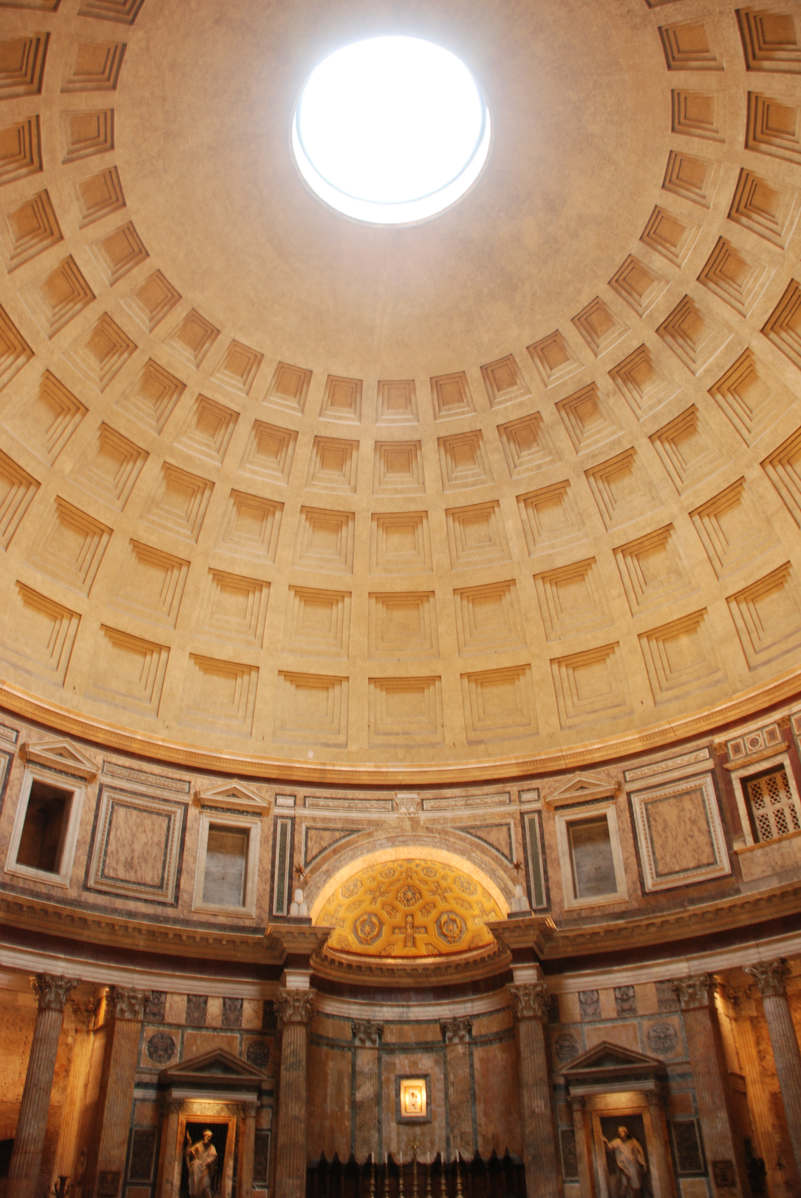 Kopuła świątyni wykonana jest z betonu. Na samym środku kopuły znajduje się otwór o średnicy 7,9m, zwany oculusem. Otwór ten ma za zadanie oświetlenie świątyni.