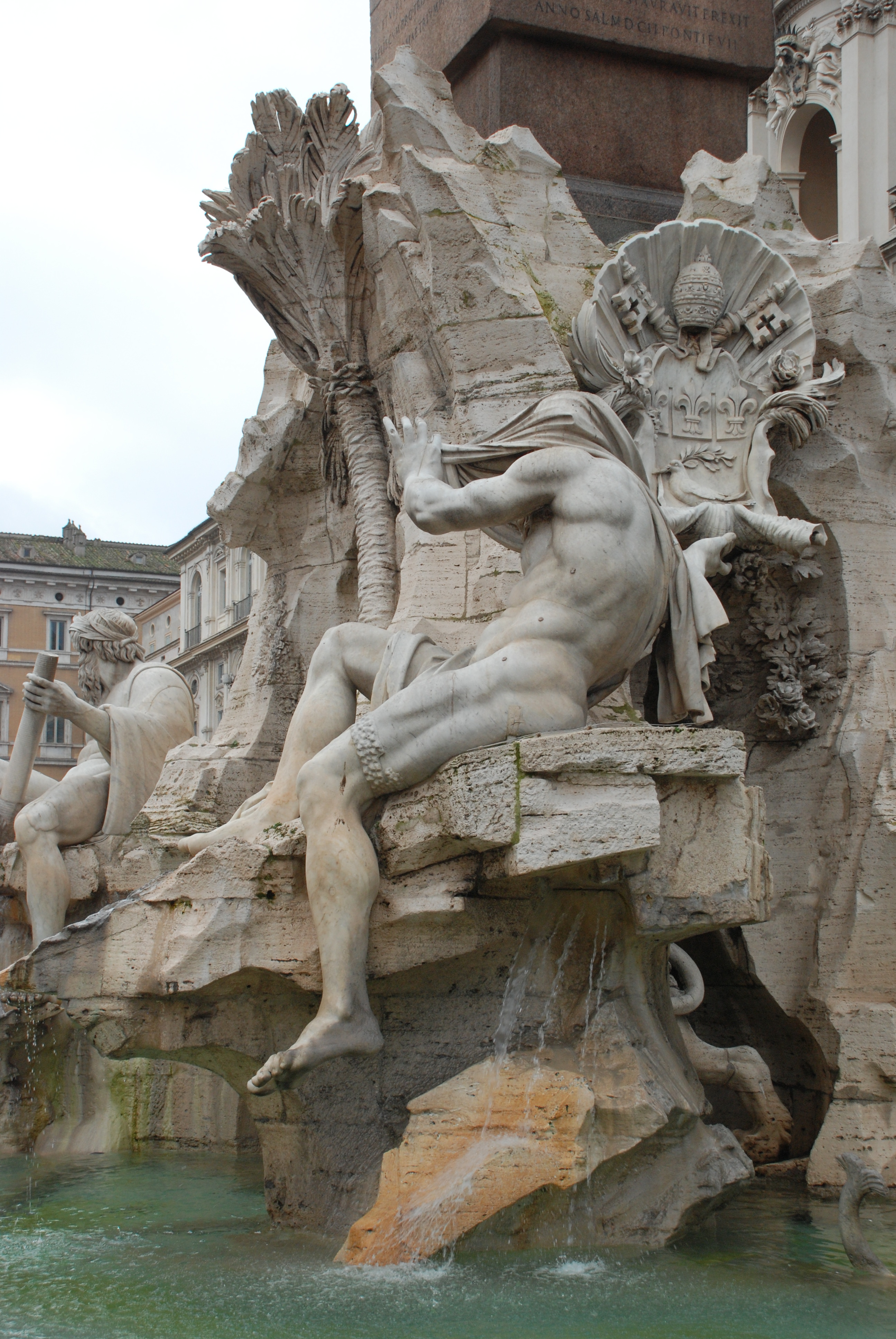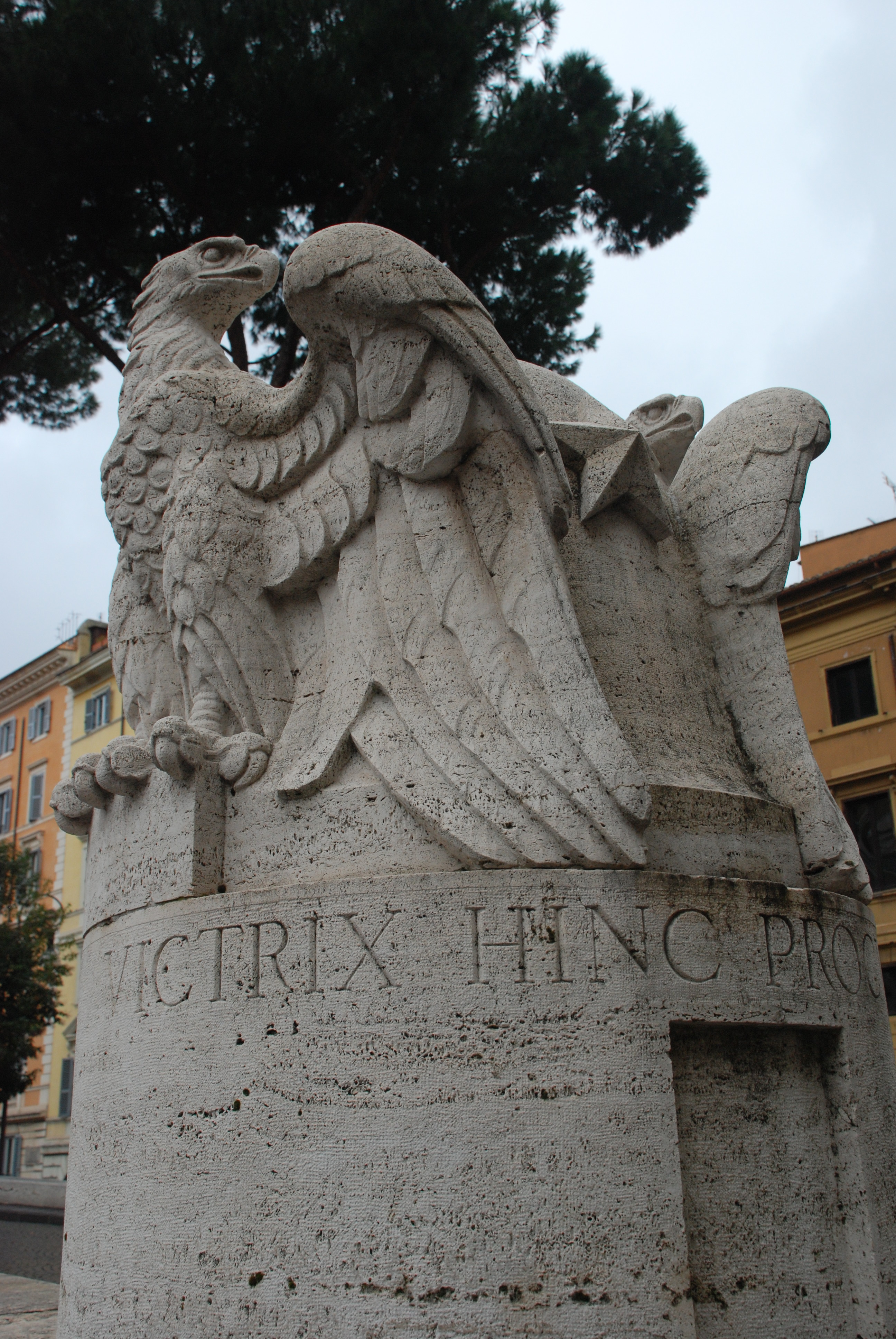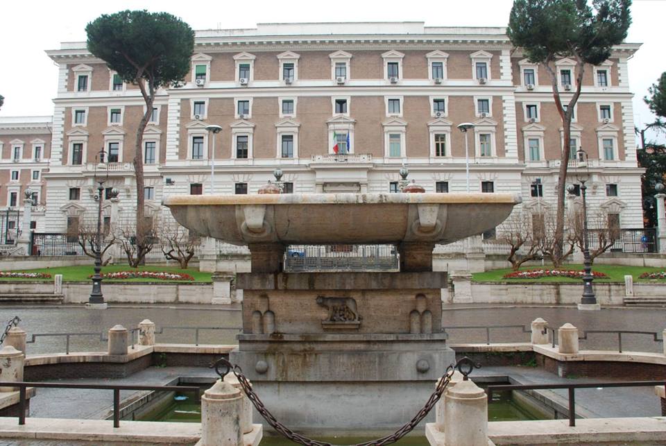 Fontanna przedstawiająca Wilczycę kapitolińską, karmiącą Romulusa i Remusa. Wilczyca to symbol stolicy starożytnego imperium rzymskiego.