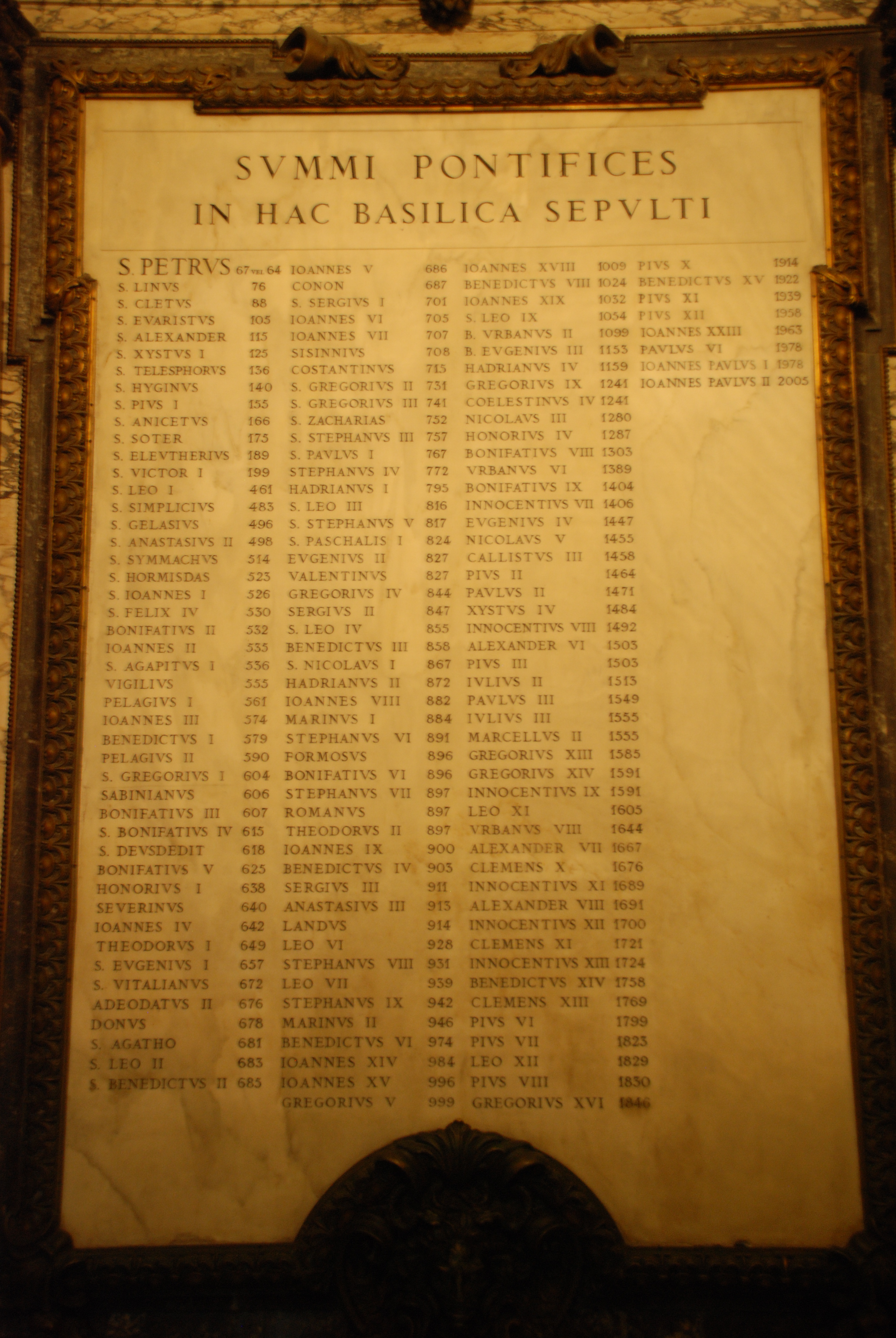 Poczet papieży. Jest to lista papieży kościoła katolickiego, którzy zostali pochowani w Bazylice św. Piotra.