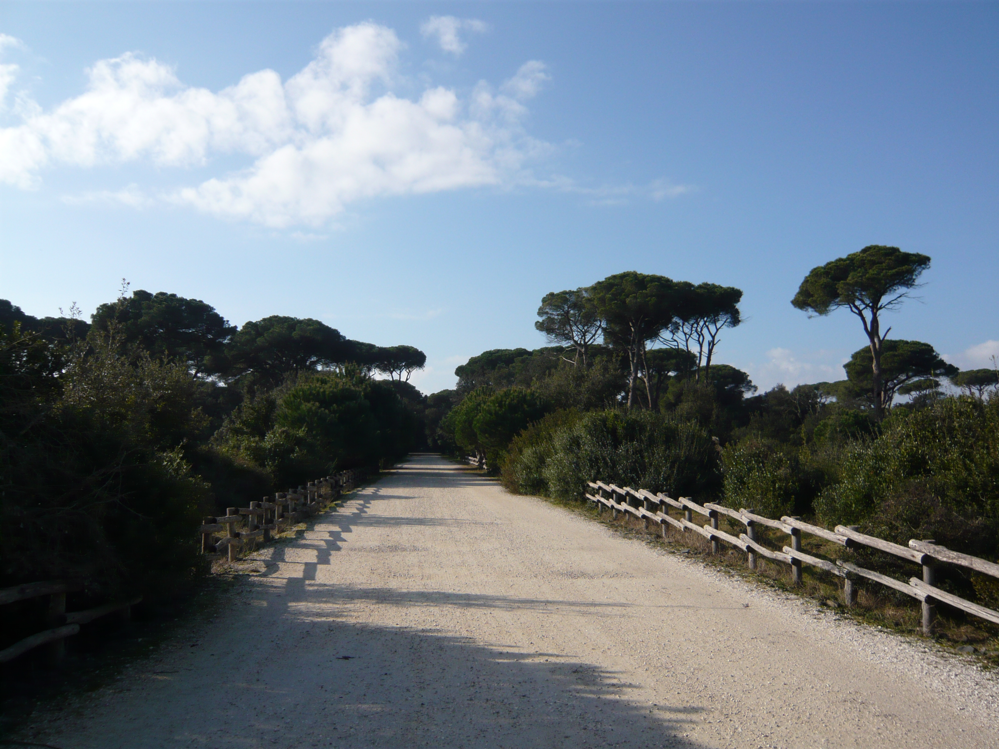 Idąc, jadąc, przemieszczając sie czymkolwiek wzdłuż morza napotkasz na dużo drzew sosny pinii.