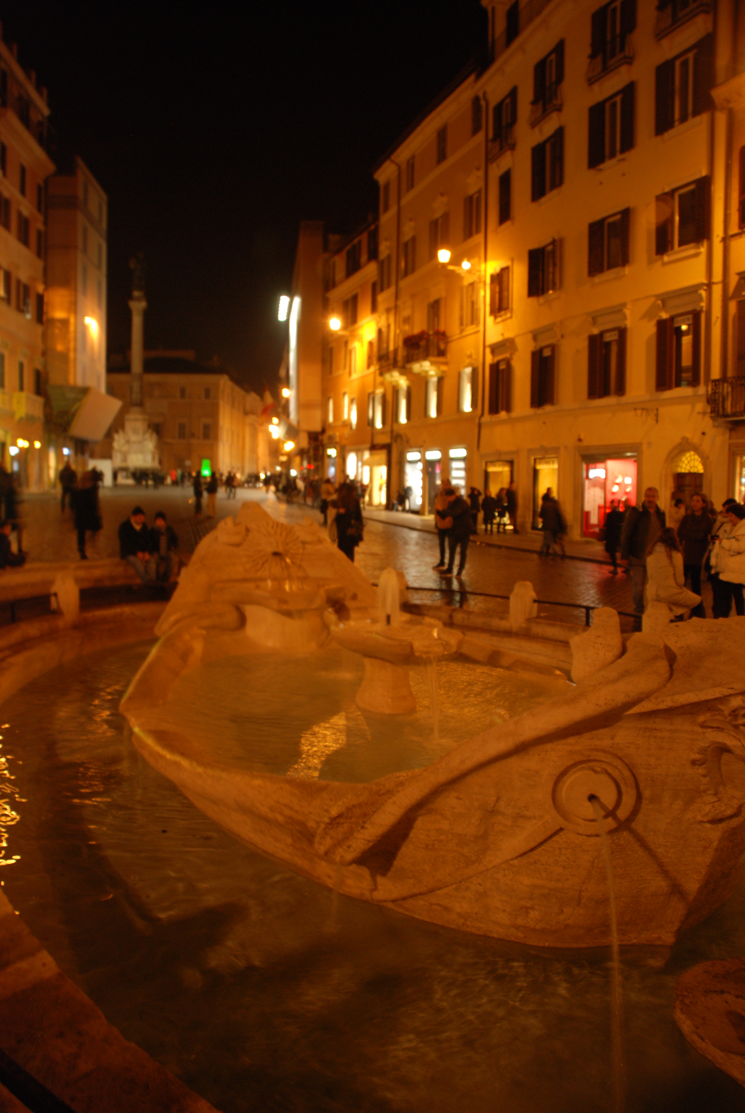 Natomiast na samym dole stoi wybudowana w 1623r. fontanna Barcaccia. Fontanna jest w kształcie łódki. Zasilają ją wody doprowadzane z akweduktu, więc ludzie często decydują się na wypicie "łyczka" tej wody.