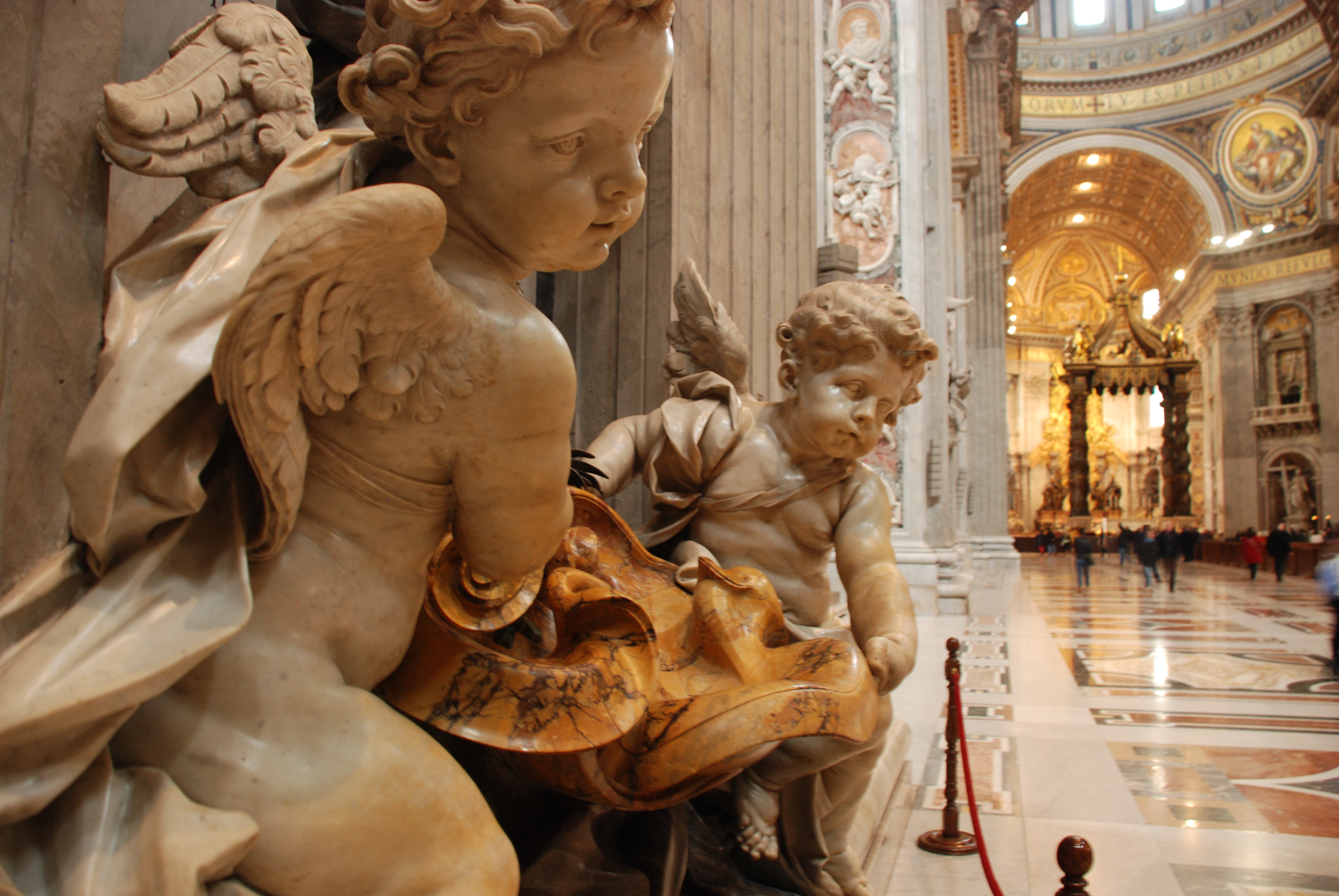 Przepiękne figury aniołków. Wnętrze Bazyliki św. Piotra.