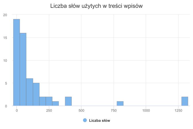 histogram liczby słów użytych w treści wpisu