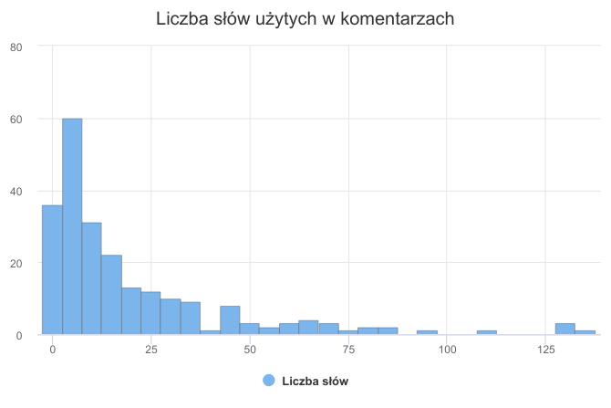 histogram liczby słów użytych w komentarzach