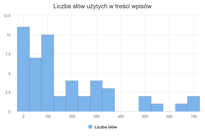 histogram liczby słów użytych w treści wpisu
