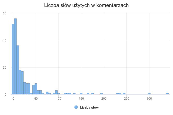 histogram liczby słów użytych w komentarzach