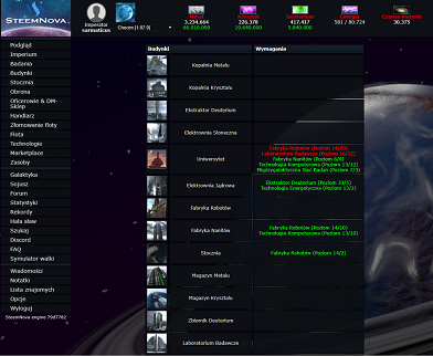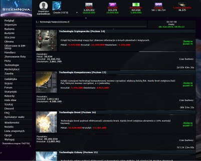 Przechodząc jednak do konkretów, zanim się nie znudziłem, zdążyłem napisać nowy wygląd dla strony głównej (po zalogowaniu), budynki, badania, oraz drzewko technologii co prezentuje poniżej (badania i budynki zasadniczo wyglądają tak samo więc wrzucam tylko jedno)