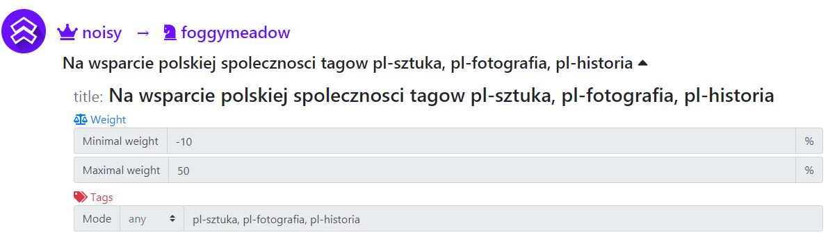 Tu od razu muszę powiedzieć, że jeszcze wczoraj bez wcześniejszej rozmowy z foggymeadow zostało zadane na discordzie pytanie kto by chciał być kuratorem tagu, na co ja odpowiedziałem swoją chęcią (w konsekwencji @nieidealna.mama poleciła mnie na to "stanowisko" Noisemu, ale bezskutecznie, samo polecenie wywołało(a jakże!) dyskusję na discordzie wise o samym systemie wsparcia kuracji). Pytanie jest i do @foggymeadow (której posty bardzo cenię), bo może po prostu nie ma czasu (tak zakładam) i do @noisy'ego czy podtrzymuje swoją chęć aby jego głosy szły na dobre teksty z tego tagu. To o tyle ważne, że straciliśmy też wsparcie z PM, które szło na tag #pl-tradycje na którym też pojawiały się dobre artykuły z historią związane (chociaż ostatnio głównie jednego autora). Historia jest ważna i fajna, uważam że warto ją wspierać i mam nadzieję że uda się to wsparcie wznowić.