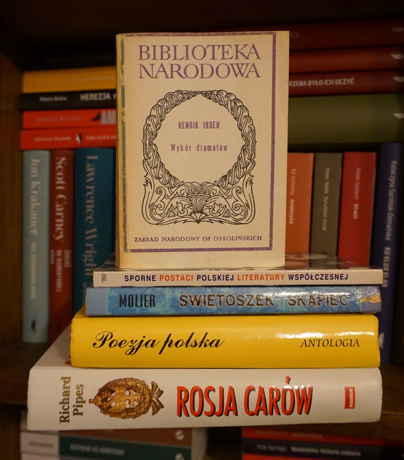 Łowy w bibliotecznym holu uważam za udane, ponieważ znalazłem w nim Rosję carów Richarda Pipesa, wybór dramatów Ibsena z Biblioteki Narodowej (co prawda, całość psuje komunistyczny wstęp), szkolne wydanie Świętoszka i Skąpca Moliera w jednym tomie, szkolną antologię poezji polskiej oraz zbiór esejów pt. Sporne postaci polskiej literatury współczesnej z 1994 roku. Lecz to nie wszystko, bo jeszcze lepszym łupem okazało się pięć zestawów filmów: cztery z cyklu Polskie debiuty, wydawane przez Mistrzowską Szkołę Filmową Andrzeja Wajdy oraz Studio Munka, oraz zestaw Młodzi i film prezentujący dorobek twórców z Koszalina i okolic. Na płytach Polskich debiutów obejrzeć można krótkie fabuły z cyklu 30 minut, dokumenty oraz animacje. Dla interesujących się polskim kinem rzecz to nie do przecenienia. A leżała w kartonie zupełnie za darmo.