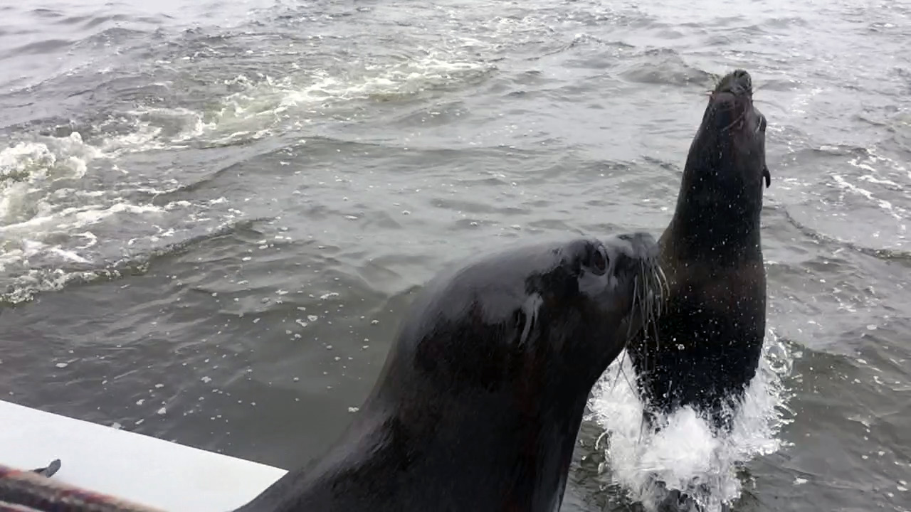 Nieopodal w wodzie ogromne stado szuka ryb. Setki kotików nurkują w burzliwych zimnych falach oceanu. Ci, którzy już się najedli, trawią w cieniu pod pomostem, który wybudowano dla turystów.