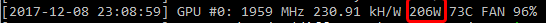 Gdy mamy więcej niż jedną kartę graficzną to sumujemy MH/s jak i użycie energii elektrycznej.