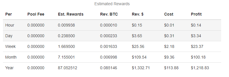 Na dole pojawi się nasz przewidywany godzinny, dzienny, tygodniowy i miesięczny i roczny dochód jeśli karta graficzna pracowała by przez 24/7.