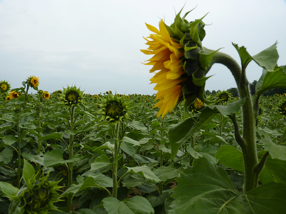 Pojechałyśmy dalej, ku naszemu celowi. Było nim ogromne pole słoneczników, które Andzia wygooglała dzień wcześniej. Gdzieś w okolicy Zawiercia. Znalazłyśmy... trudno było objąć je wzrokiem. Słoneczniki prężyły się dumnie, niemal wszystkie spoglądając w jedną stronę.